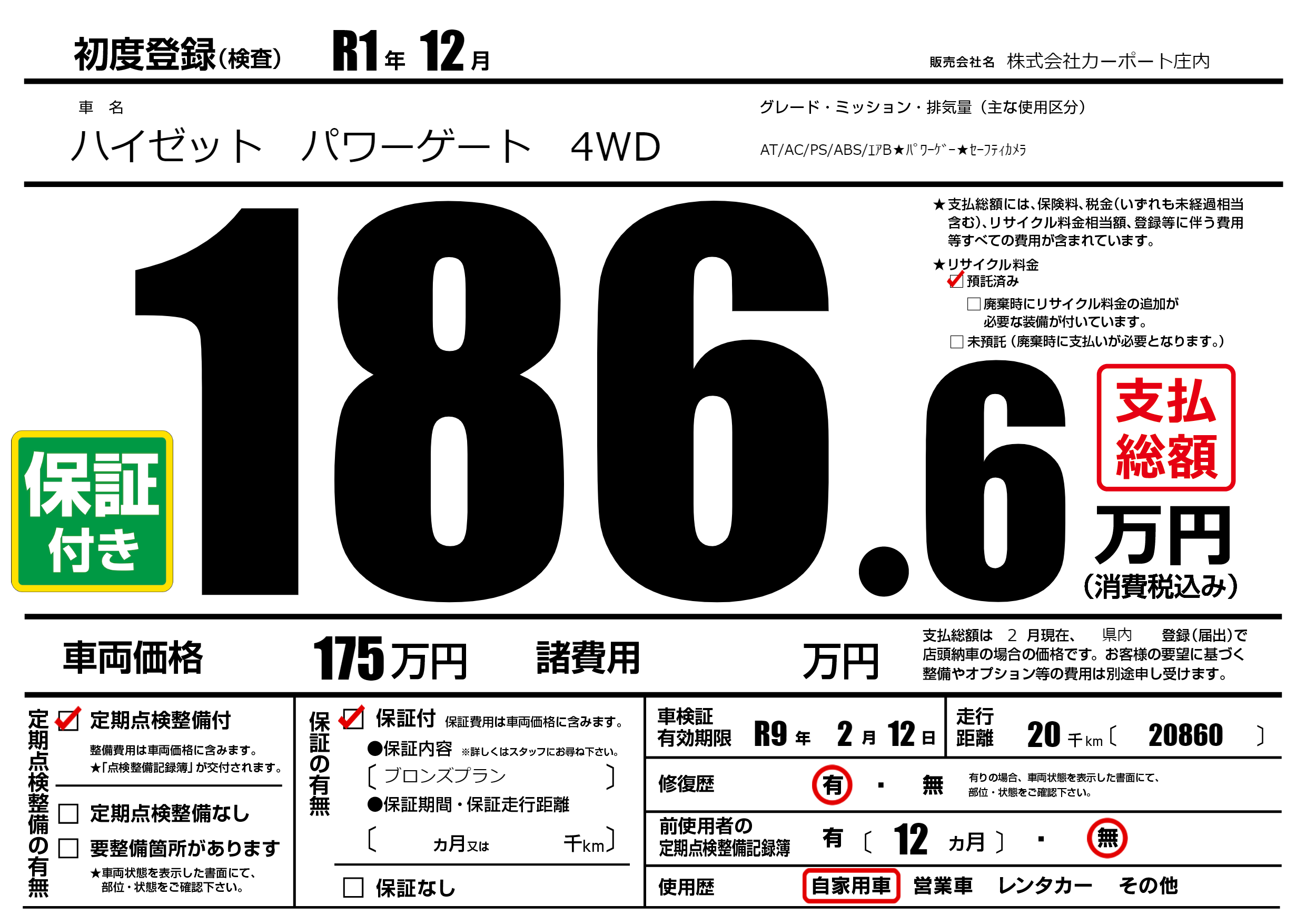 | 定期点検整備 | 定期点検整備あり | ||