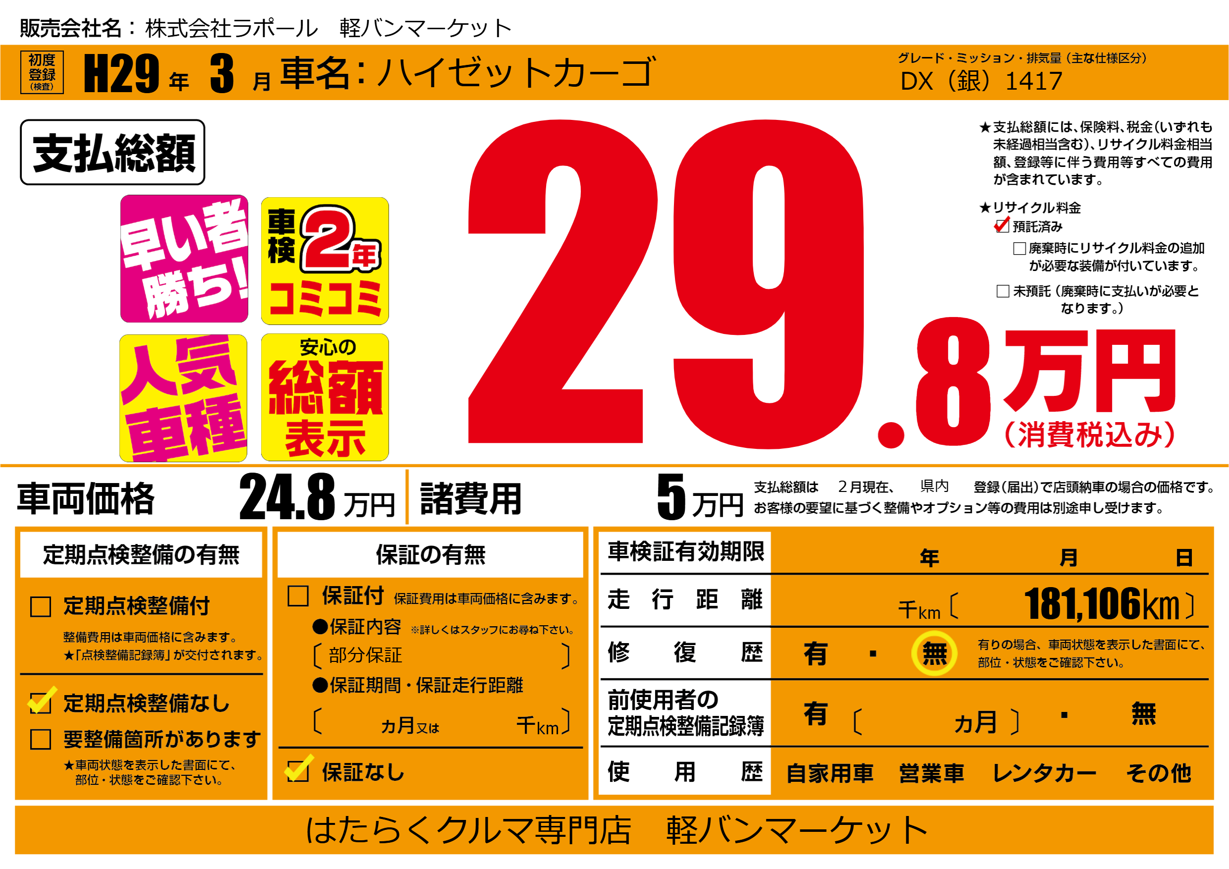 | 走行キロ | - | 初年度登録 | H29年3月 |