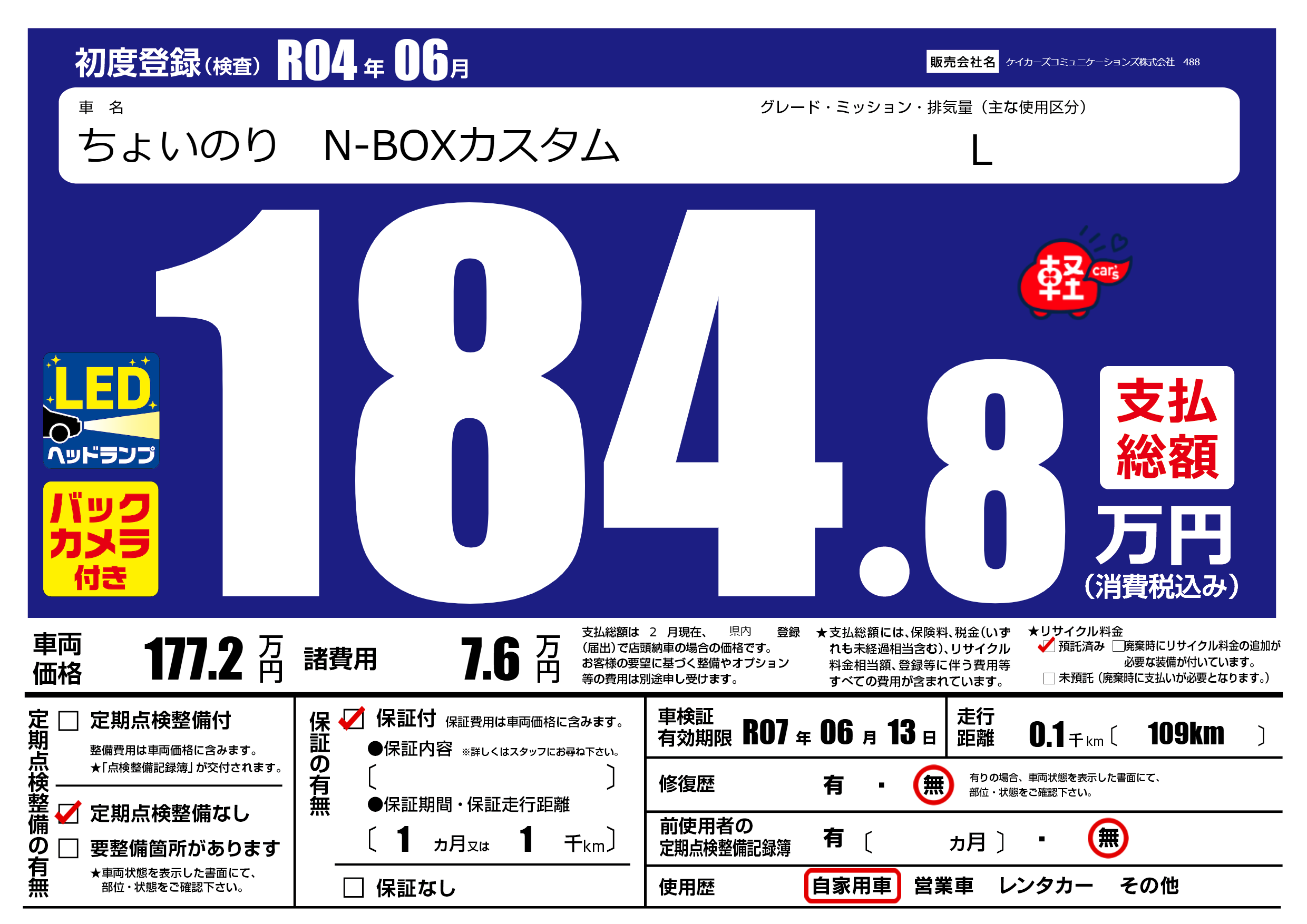 | 走行キロ | - | 初年度登録 | R04年06月 |