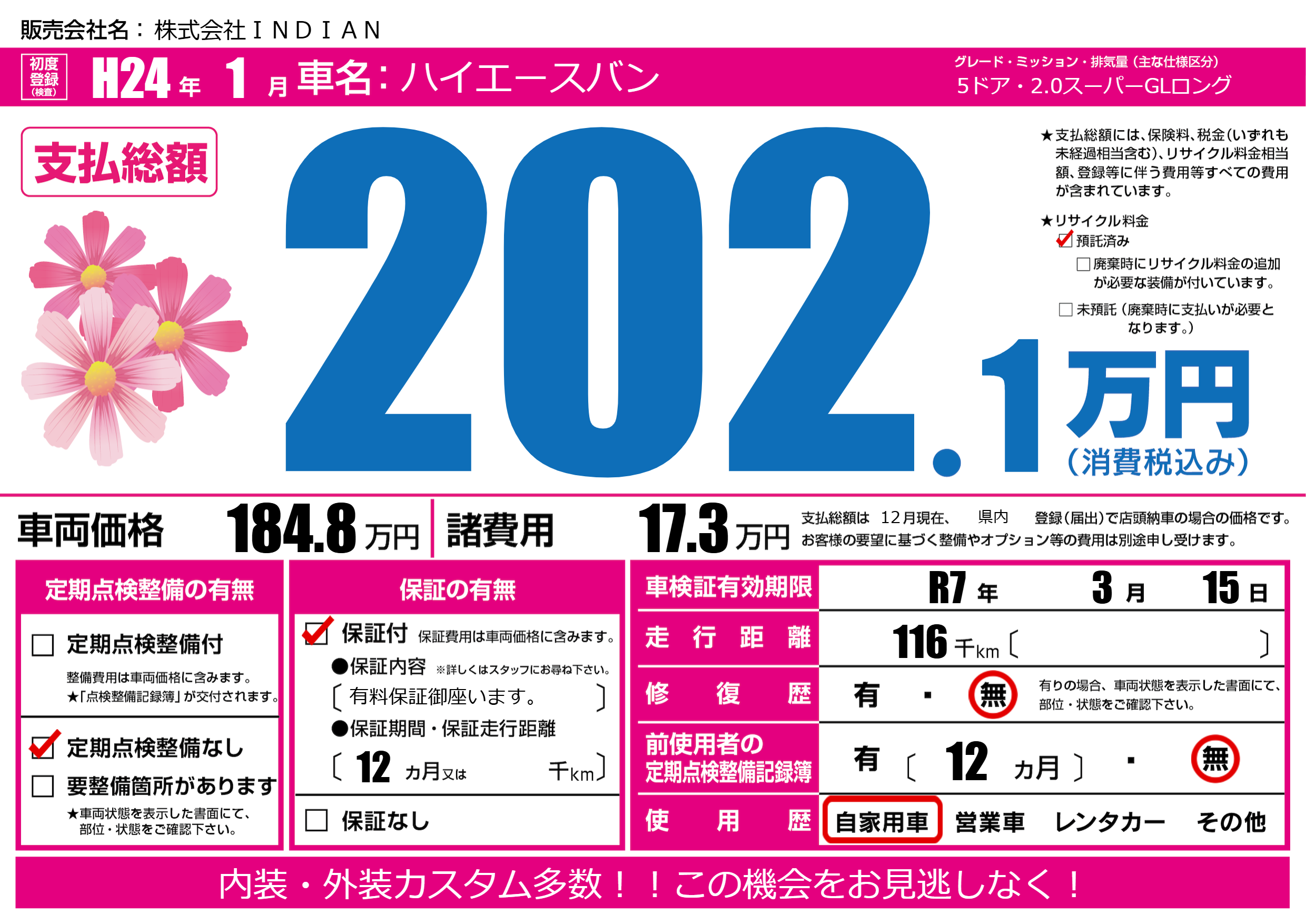 | 車検制限 | R7年 3月 15日 | ||