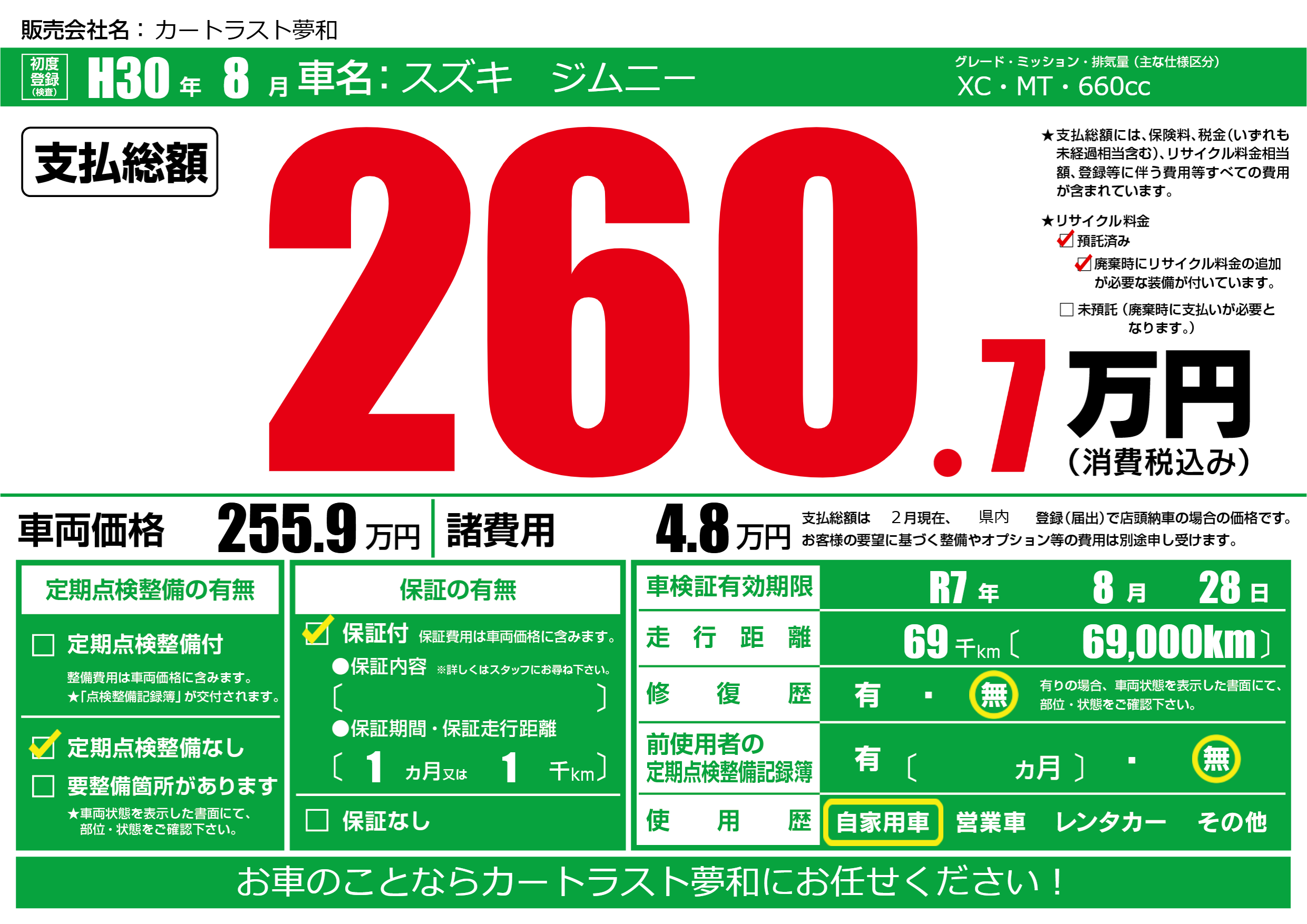 なし | 車検制限 | R7年8月28月 |