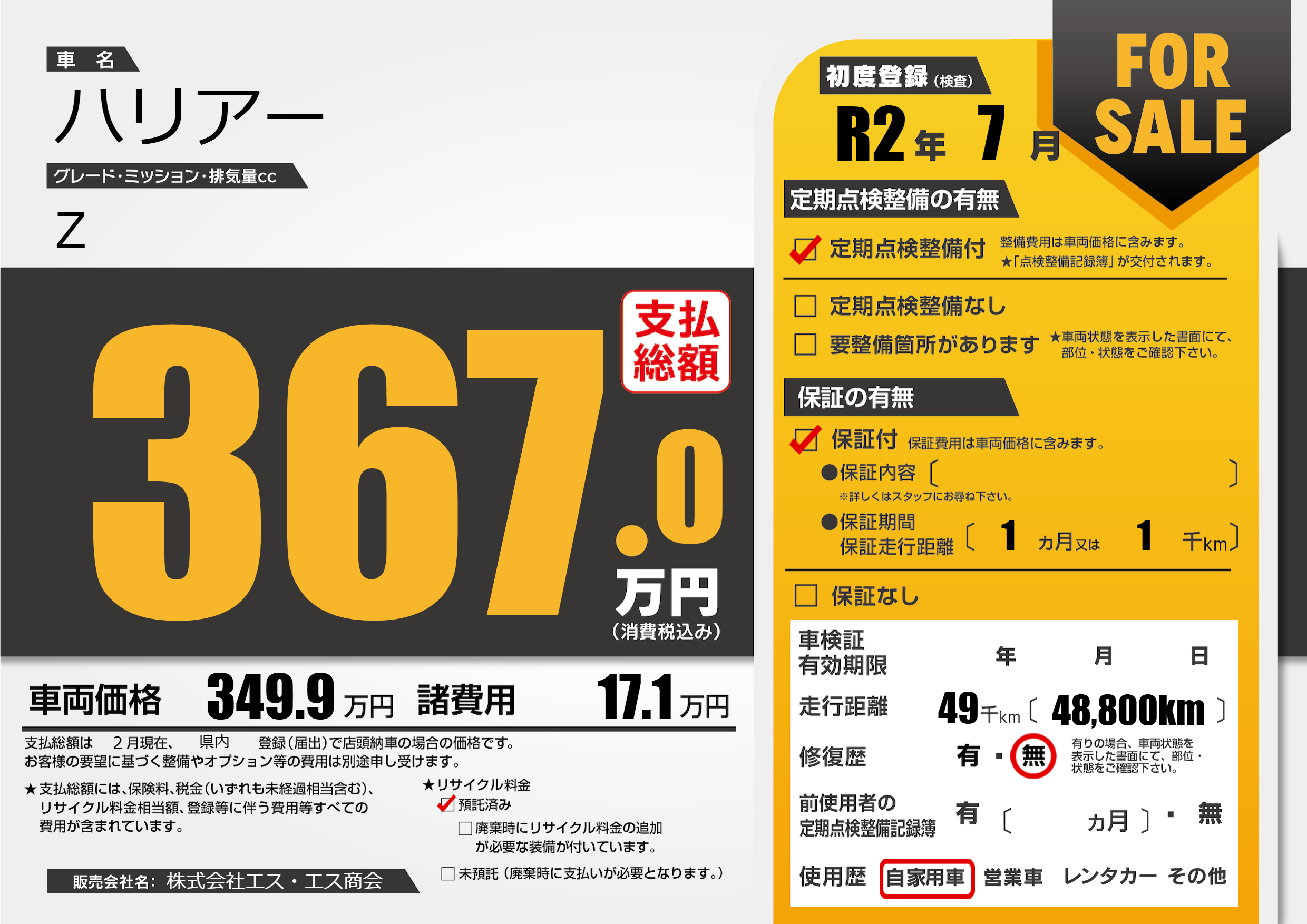 | 定期点検整備 | 定期点検整備あり | ||