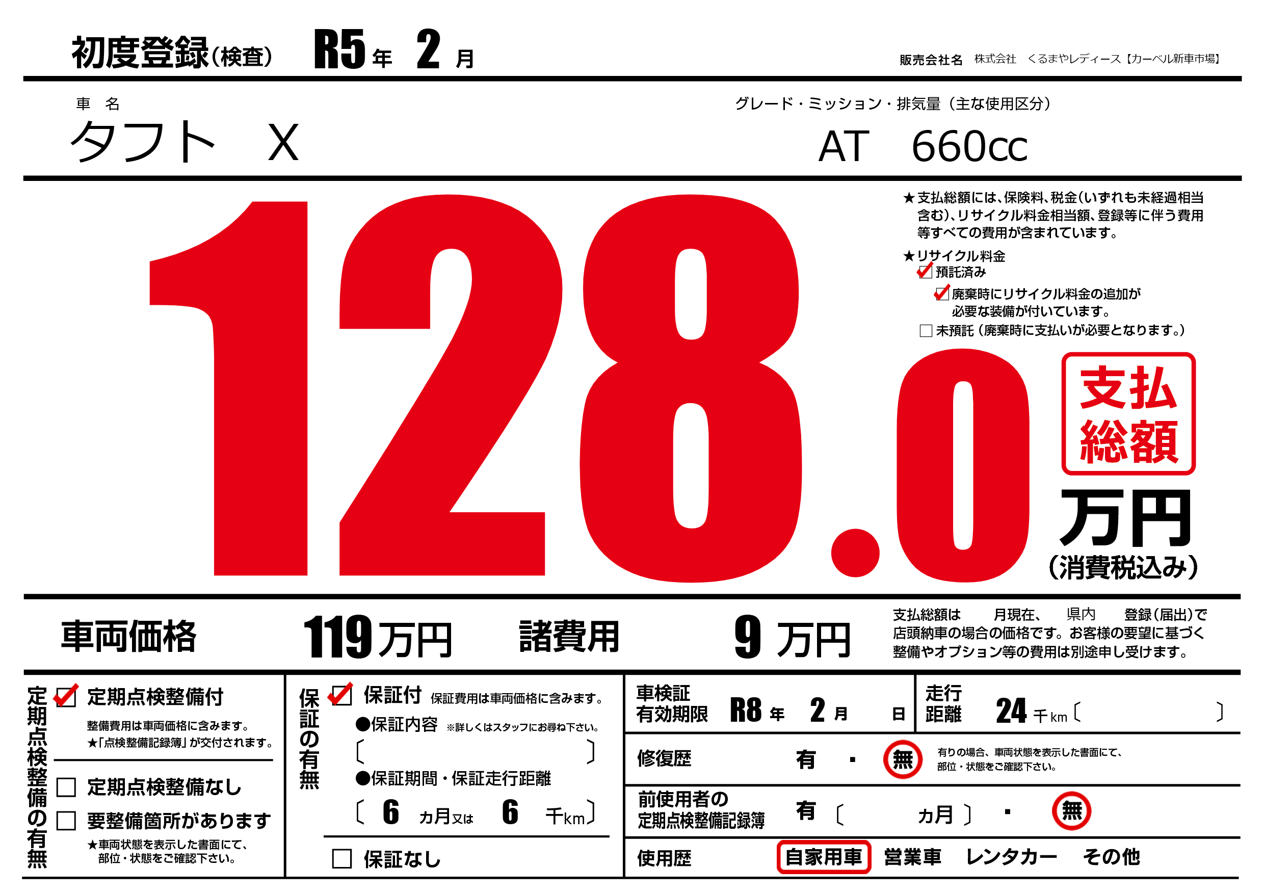 | 走行キロ | 2.4万km | 初年度登録 | R5年2月 |