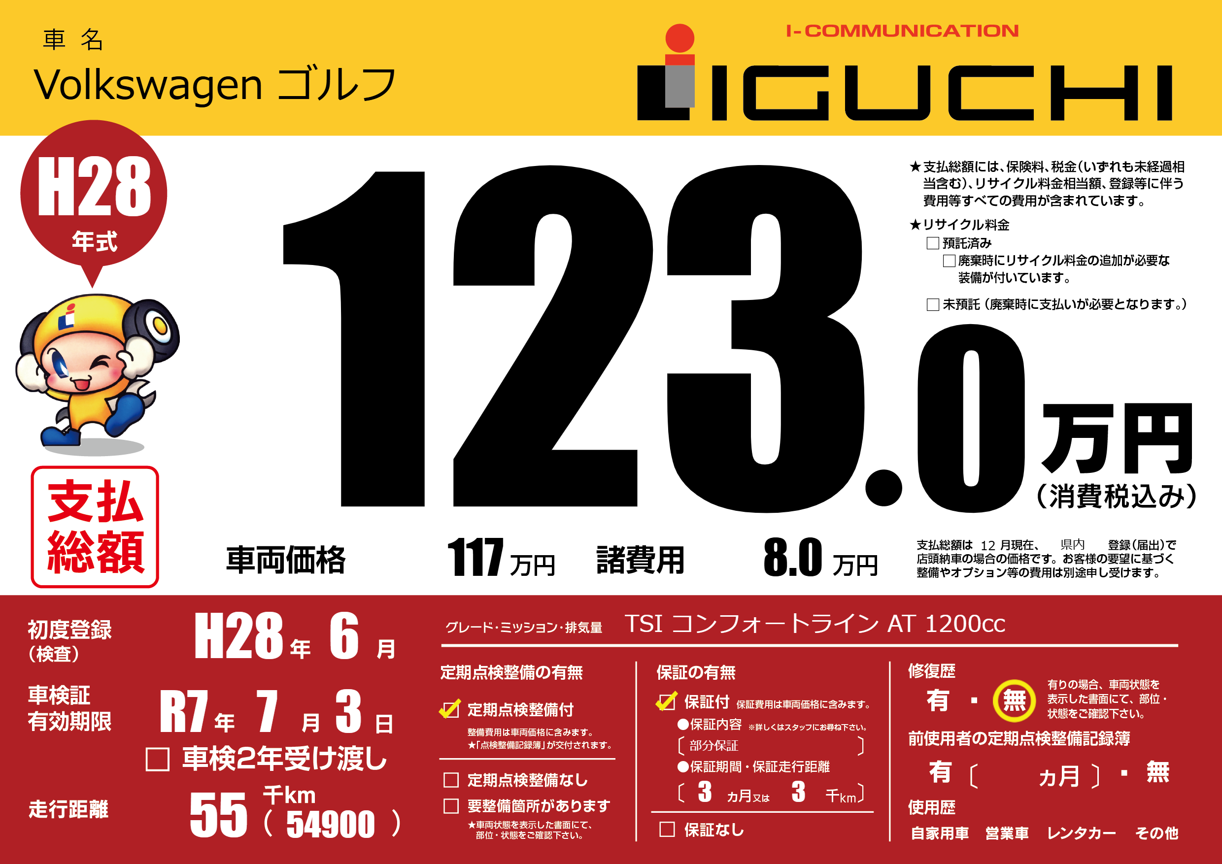 | 車名 | Volkswagen ゴルフ | グレード ミッション 排気量 |