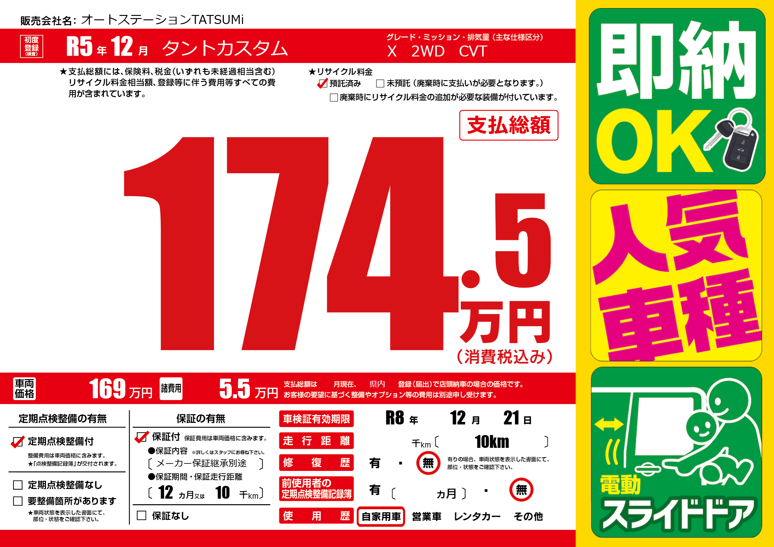 | 車名 | タントカスタム | グレード ミッション 排気量 |