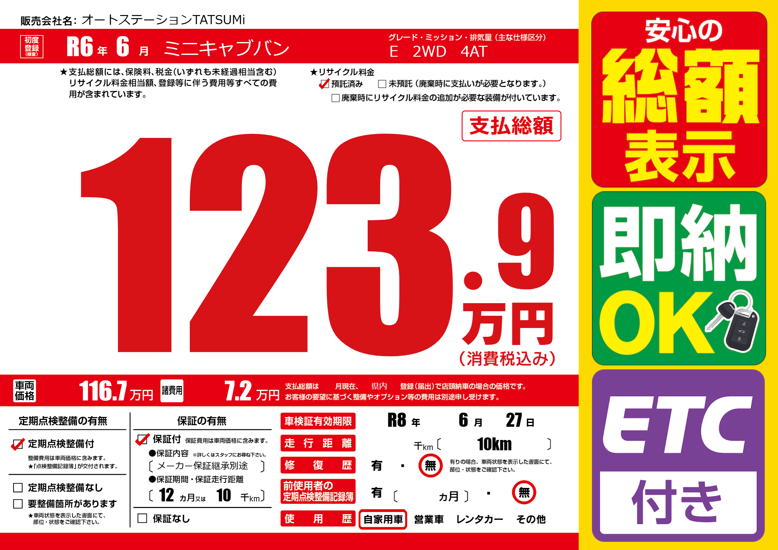 | 走行キロ | - | 初年度登録 | R6年6月 |