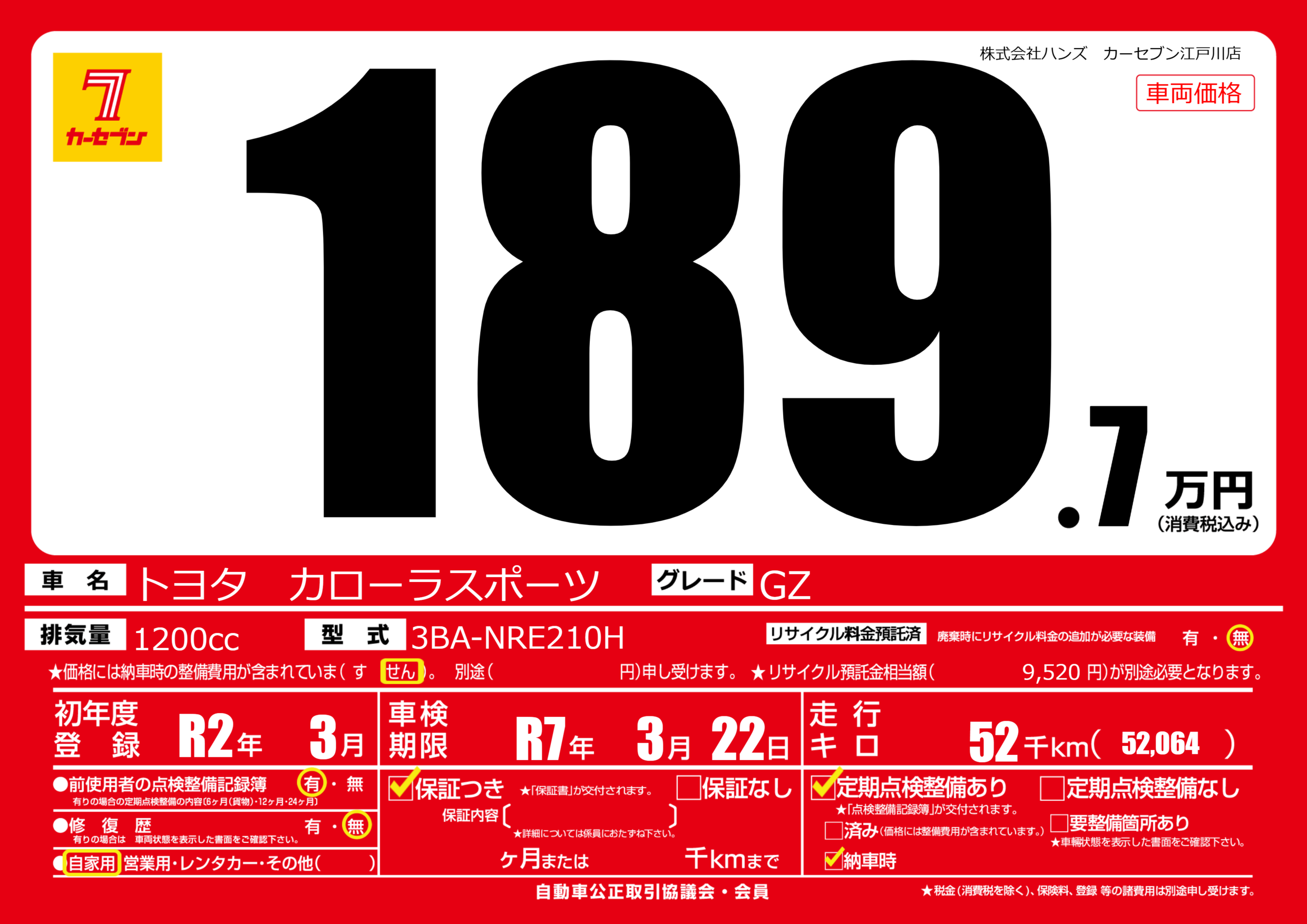 | 車検制限 | R7年 3月 22日 | ||