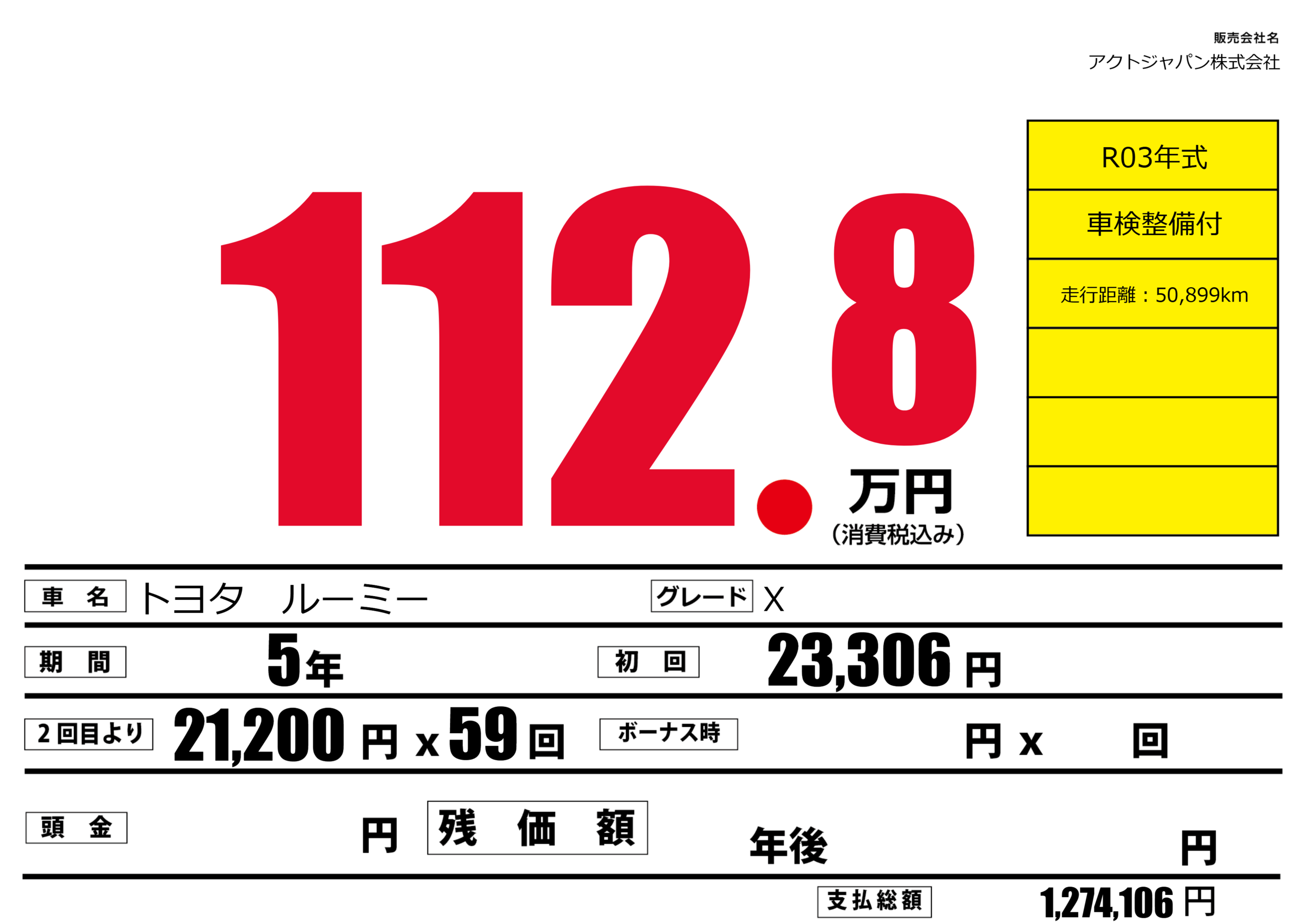 | 走行キロ | - | 初年度登録 | --- |