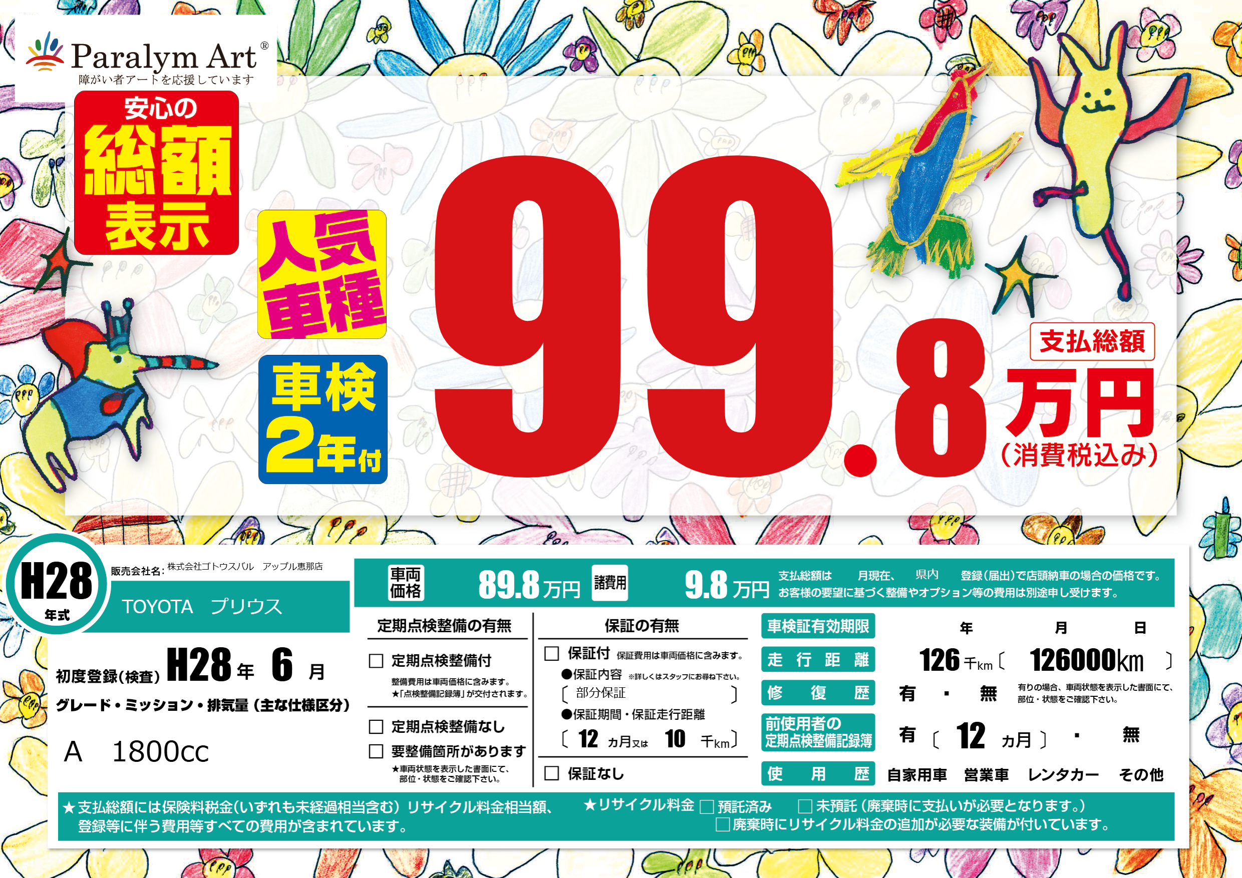 | 車名 | TOYOTA プリウス | グレード ミッション 排気量 |