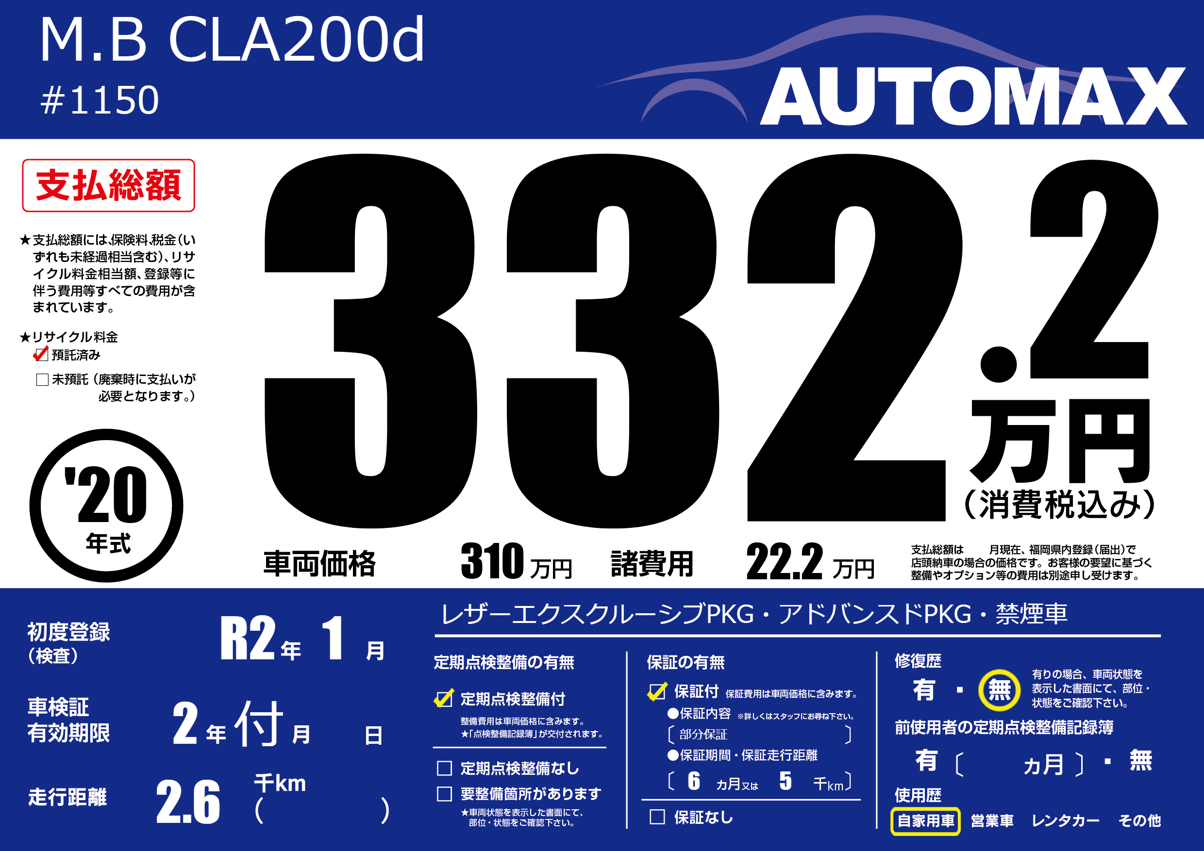なし | 車検制限 | 2年付月---月 |