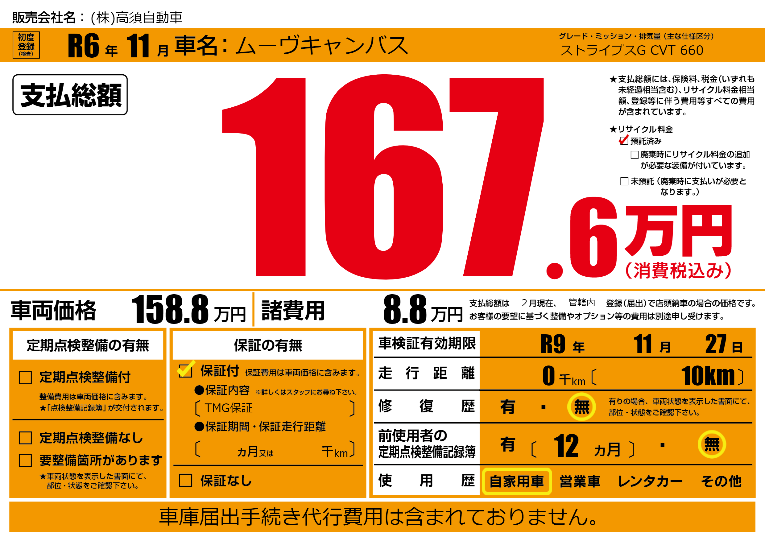 | 走行キロ | - | 初年度登録 | R6年11月 |