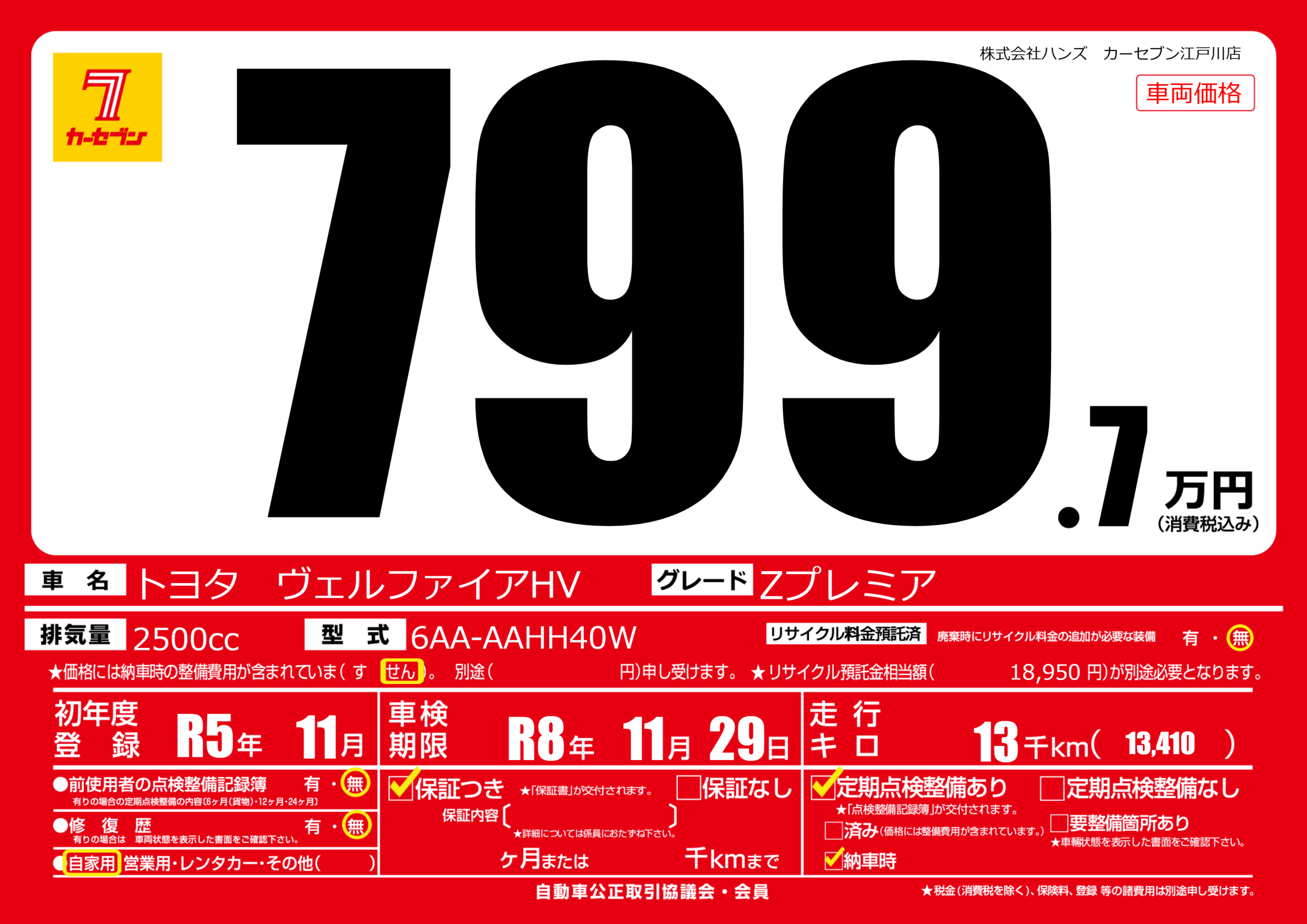 なし | 車検制限 | R8年11月29月 |
