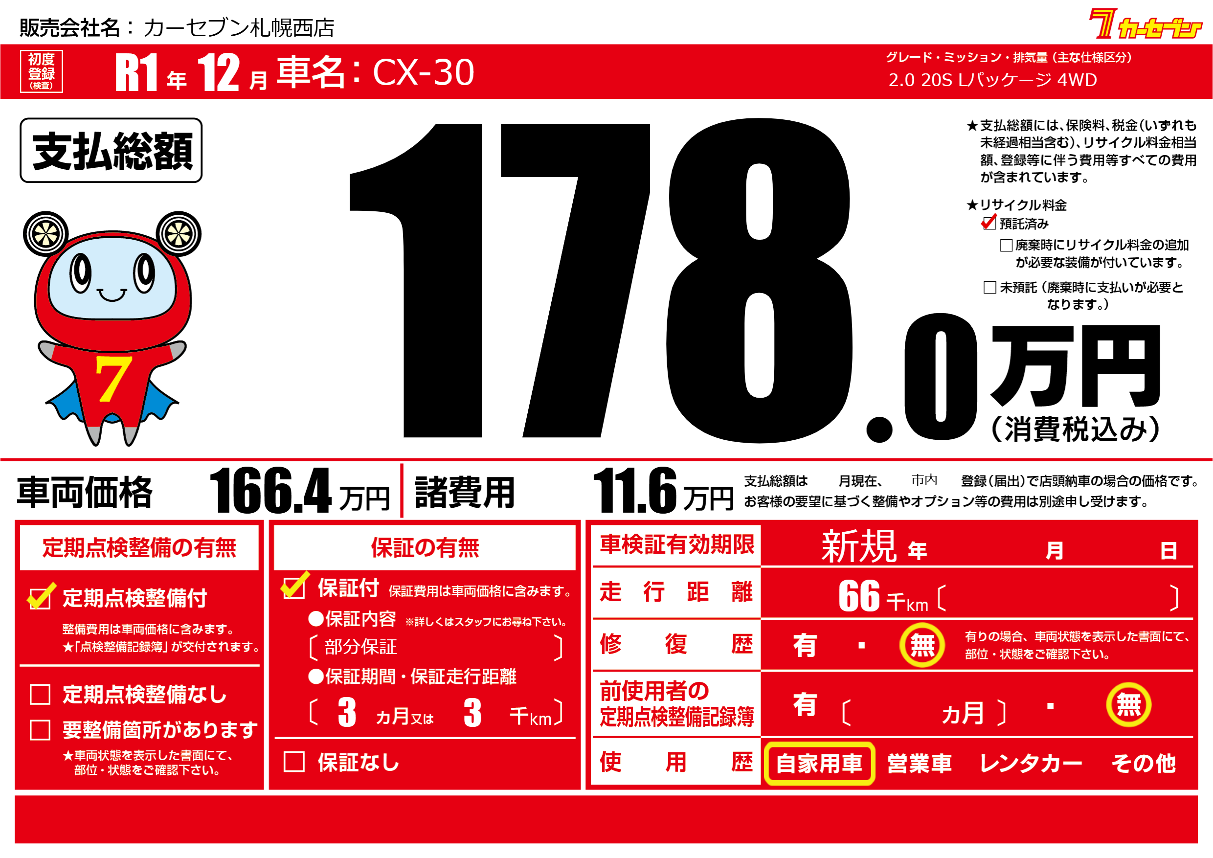 | 車名 | CX-30 | グレード ミッション 排気量 |