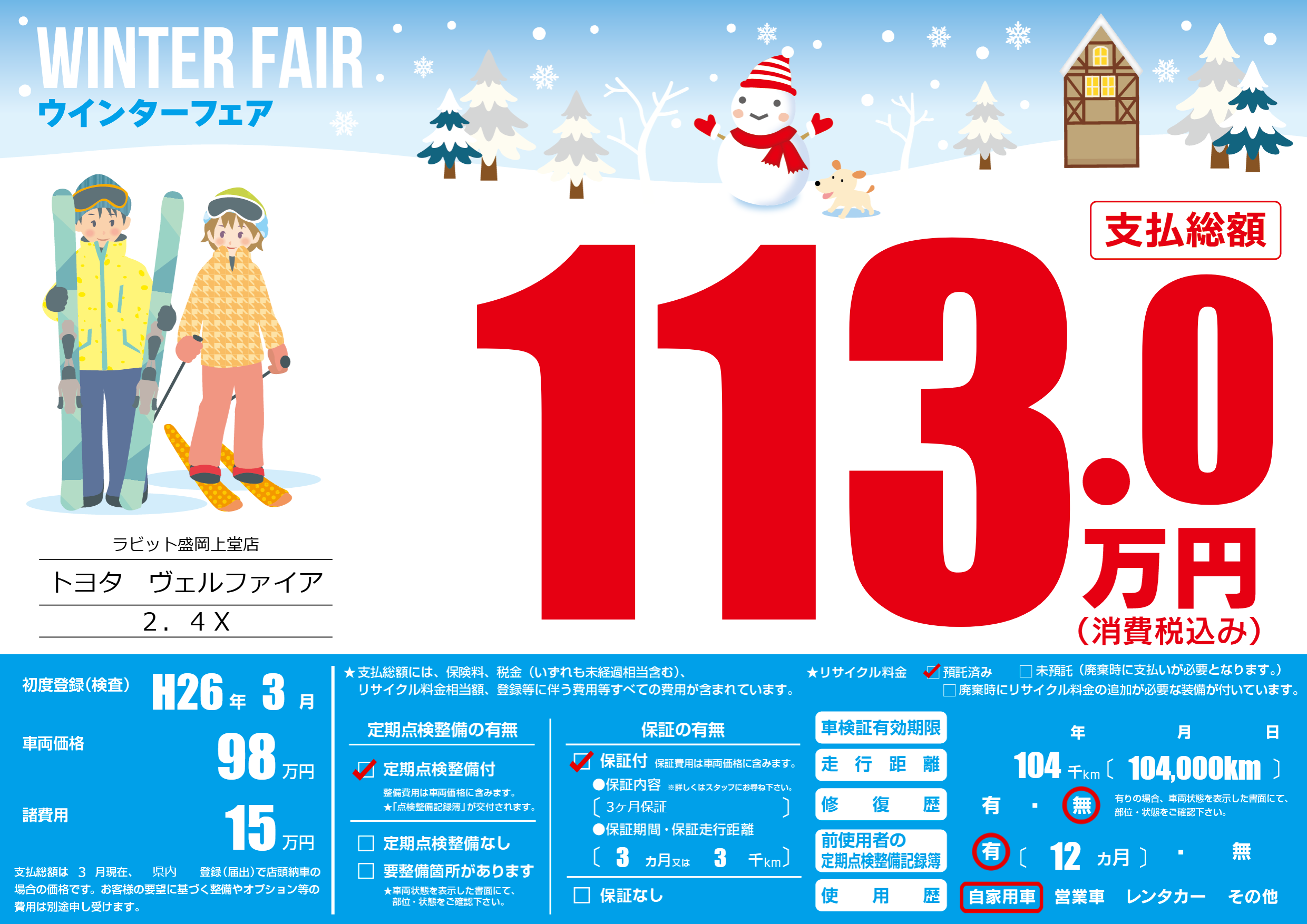 | 車名 | トヨタ ヴェルファイア | グレード ミッション 排気量 |