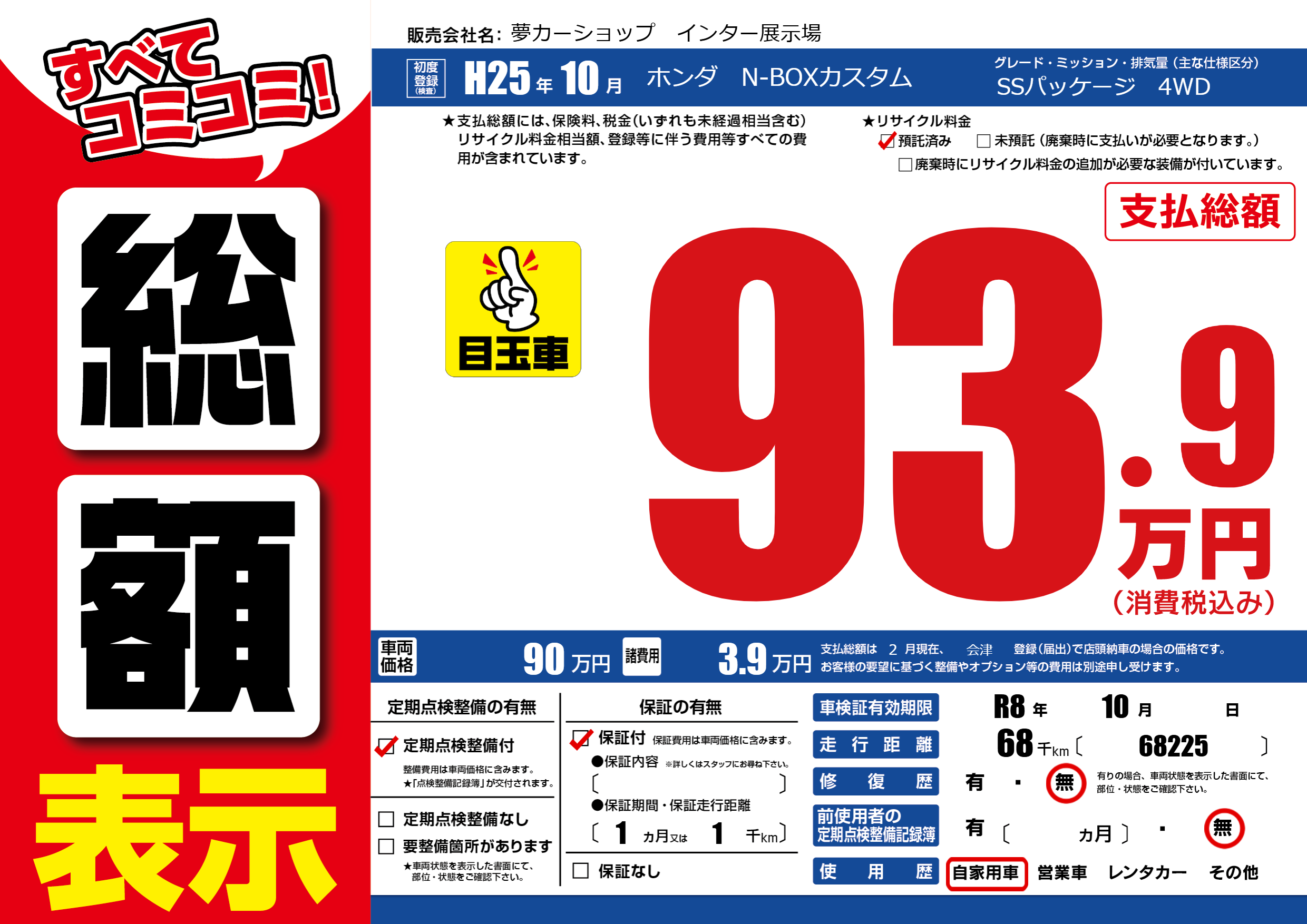 | 車検制限 | R8年 10月 - 日 | ||