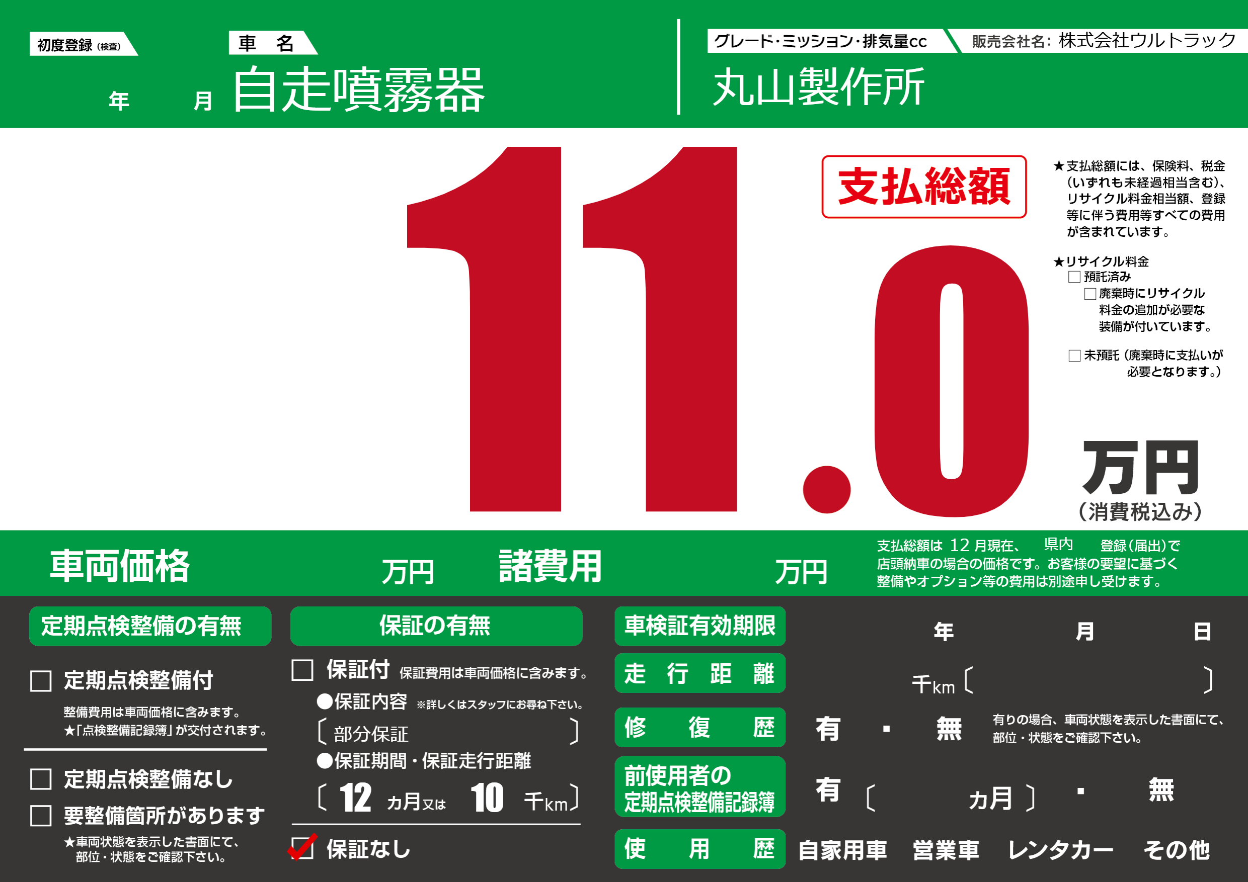 | 車名 | 自走噴霧器 | グレード ミッション 排気量 |
