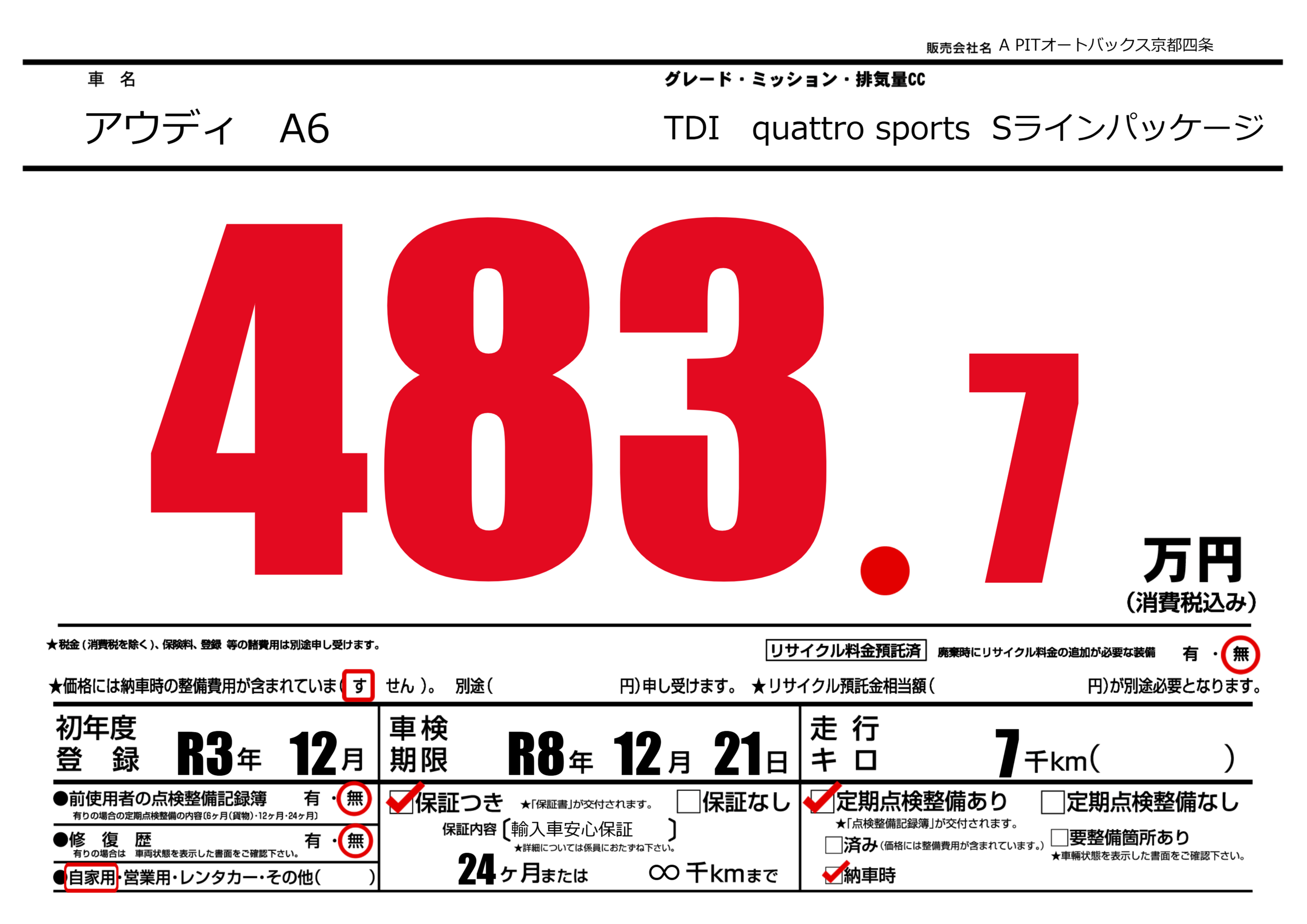 | 車検制限 | R8年 12月 21日 | ||