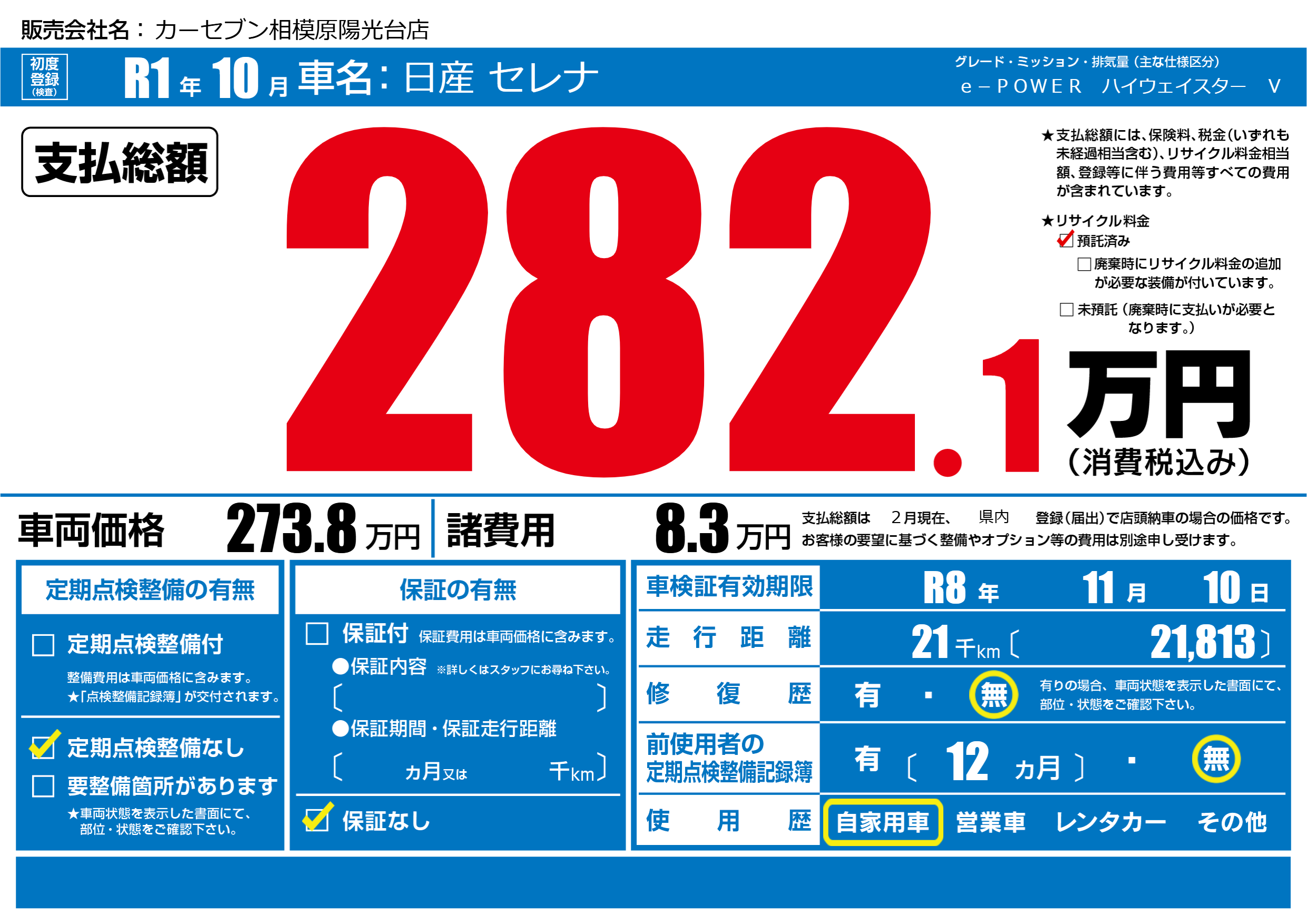 | 車名 | 日産 セレナ | グレード ミッション 排気量 |