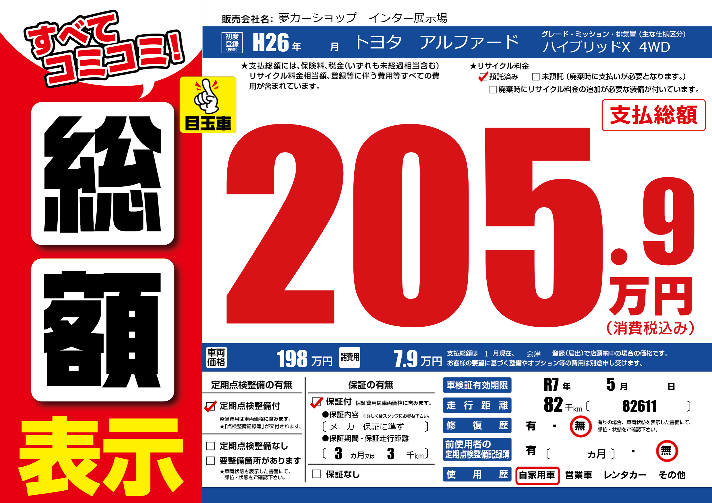 | 車検制限 | R7年 5月 - 日 | ||