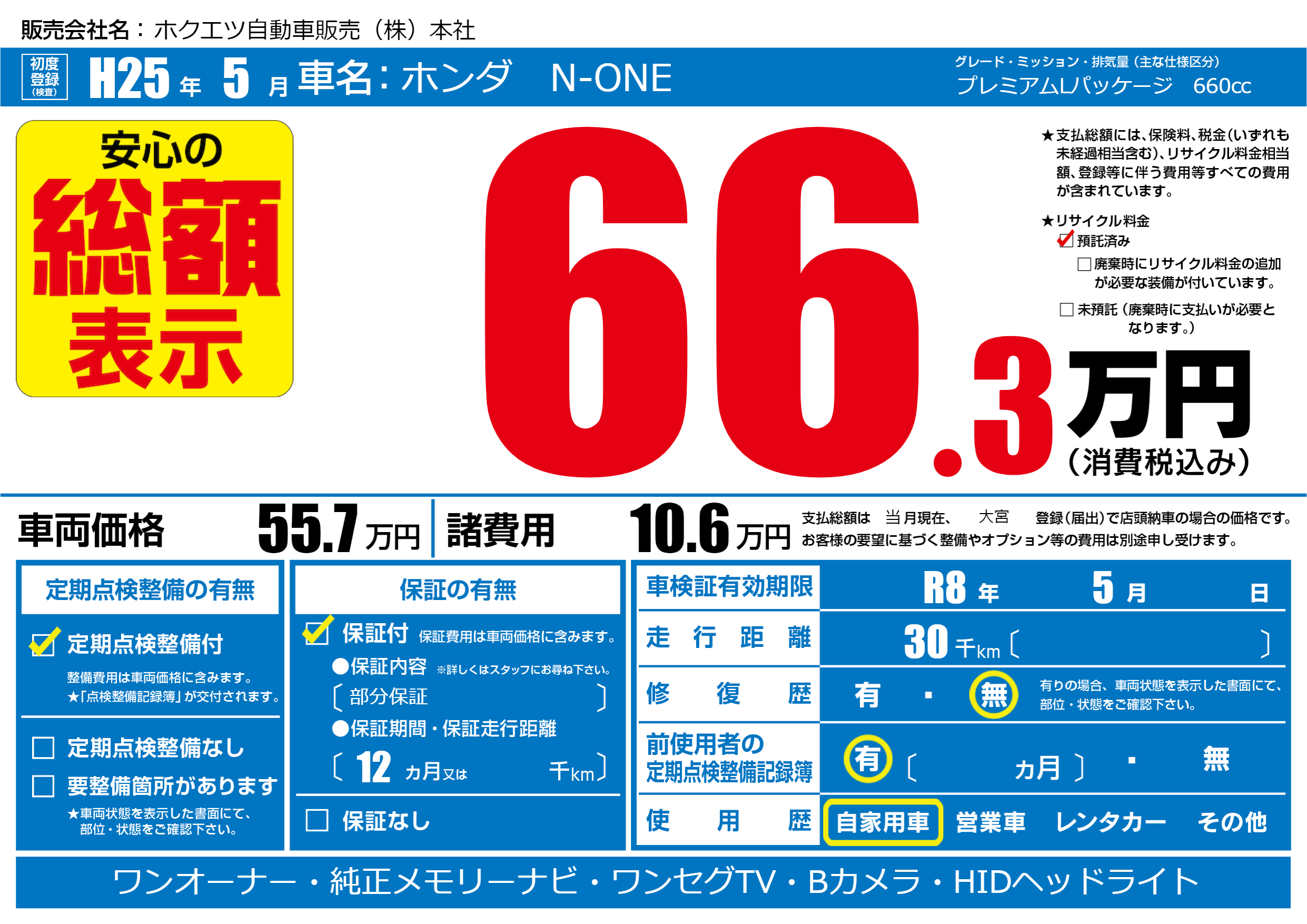 | 車検制限 | R8年 5月 - 日 | ||