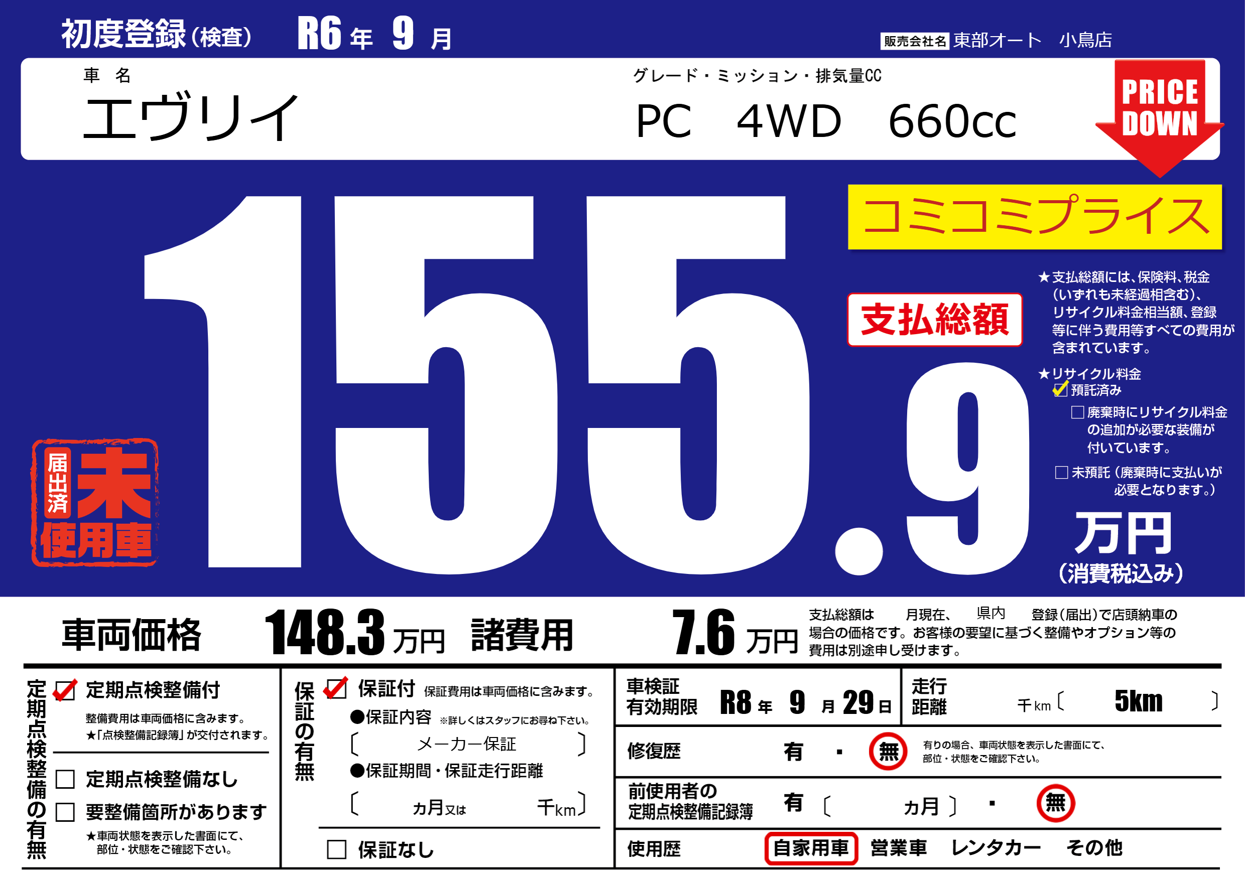 | 走行キロ | - | 初年度登録 | R6年9月 |