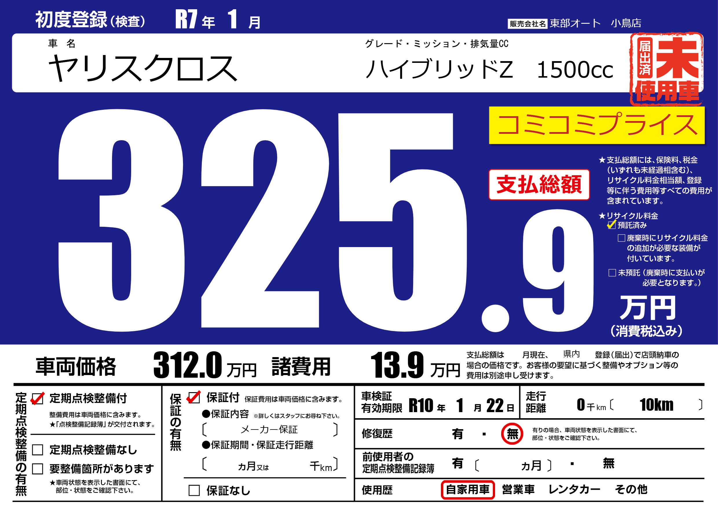 | 車検制限 | R10年 1月 22日 | ||
