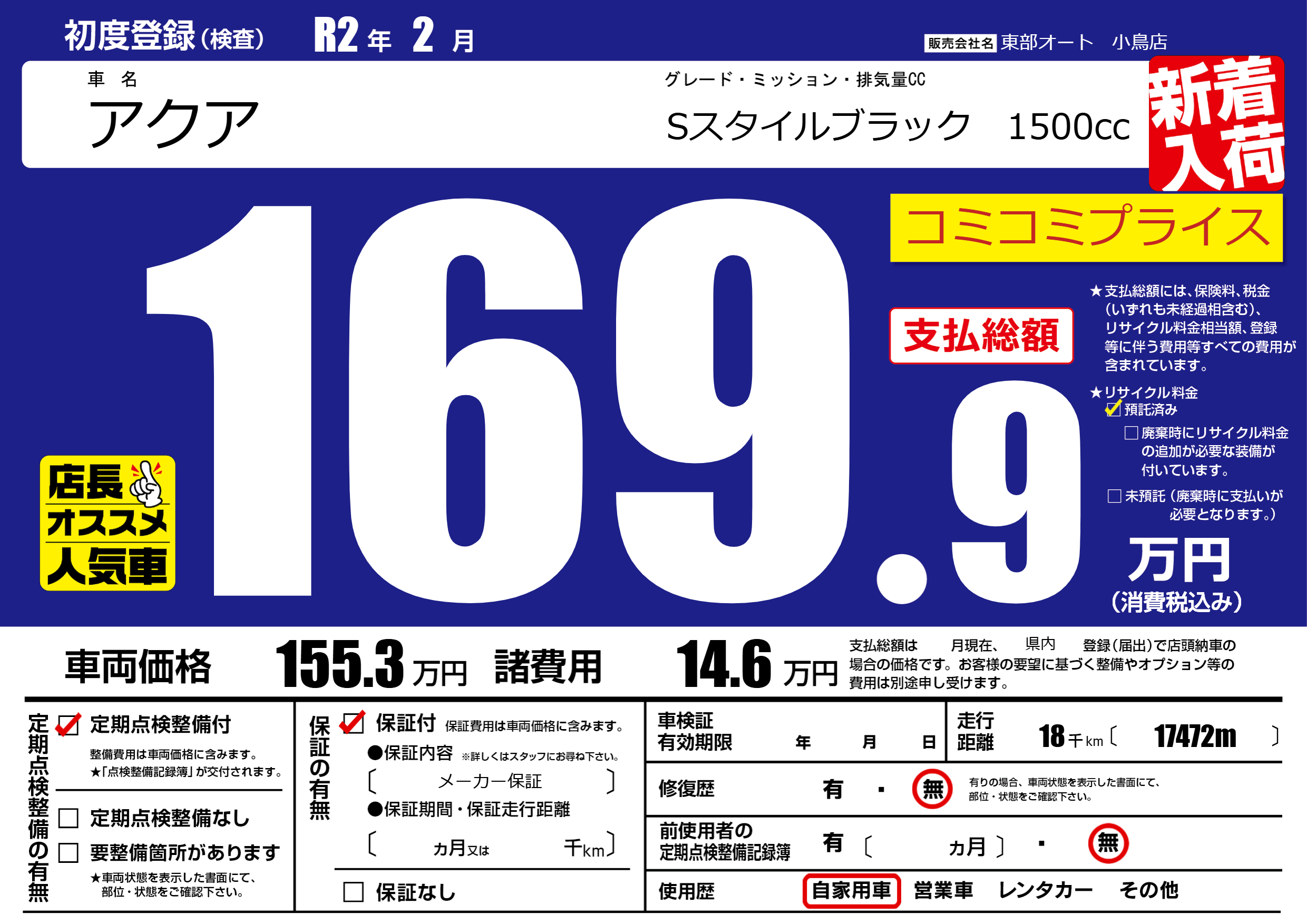 保証付き 保証内容( メーカー保証) ---ヶ月または()千kmまで |
