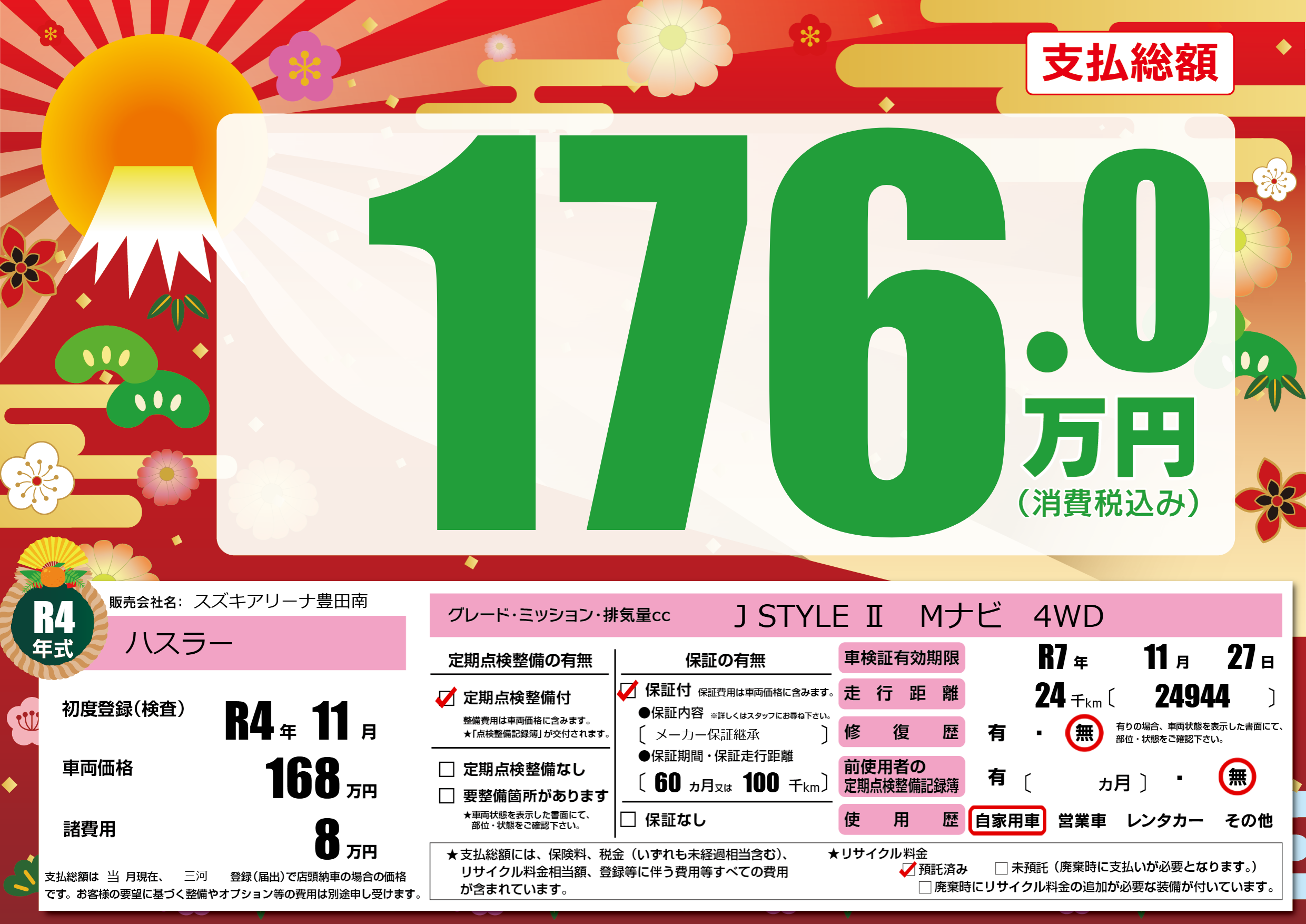 | 走行キロ | 2.4万km | 初年度登録 | R4年11月 |