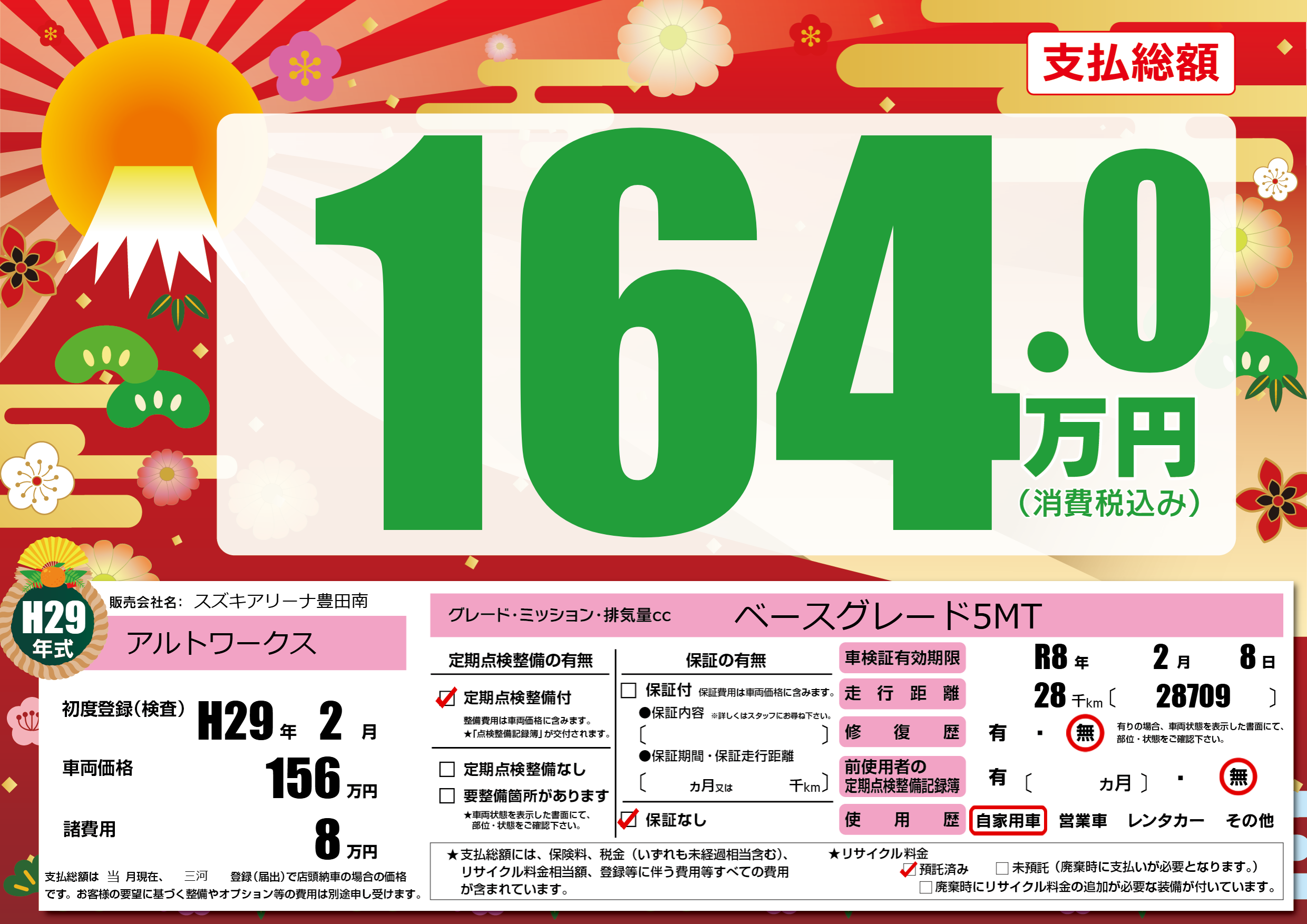 | 車名 | アルトワークス | グレード ミッション 排気量 |