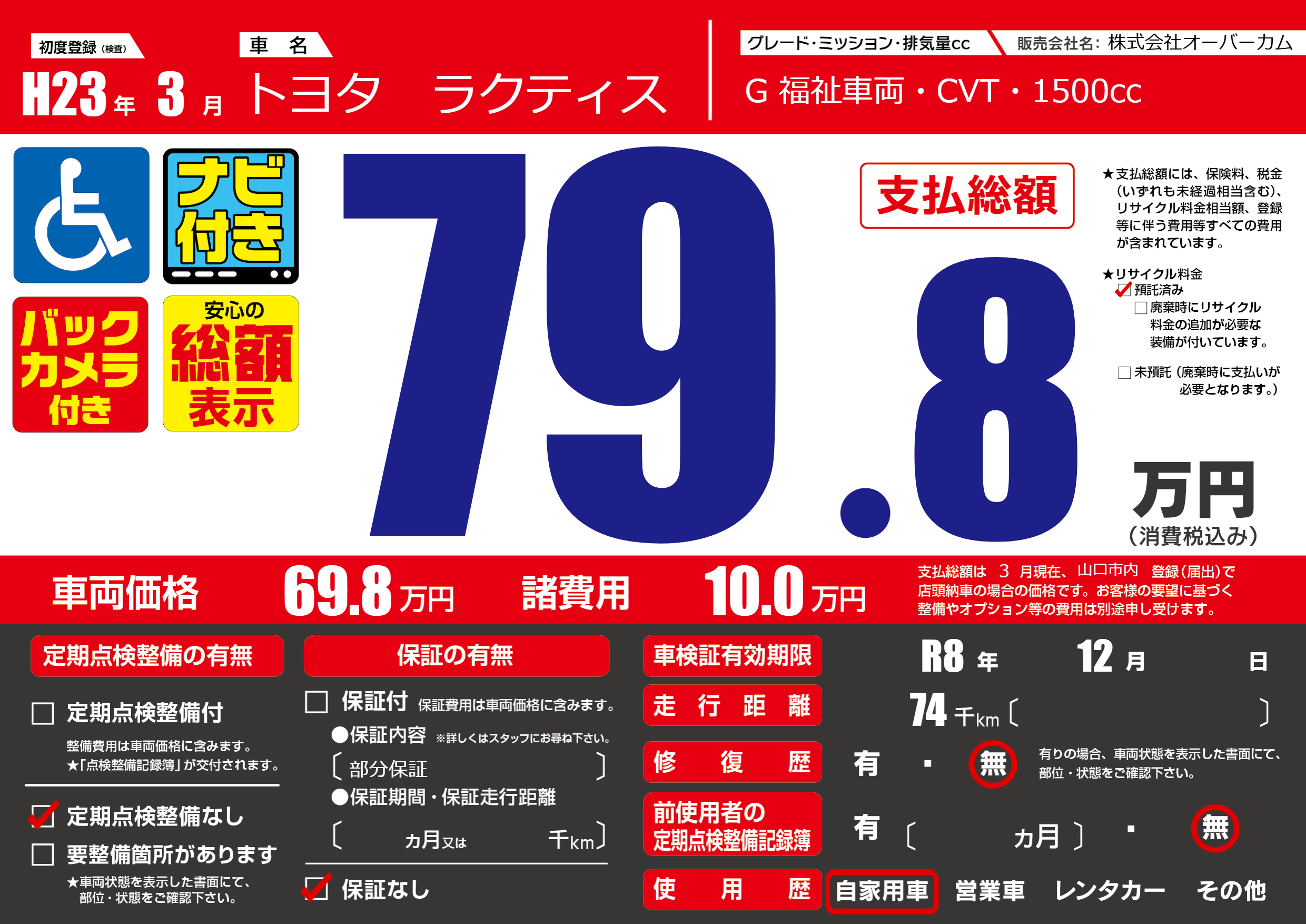 なし | 車検制限 | R8年12月---月 |