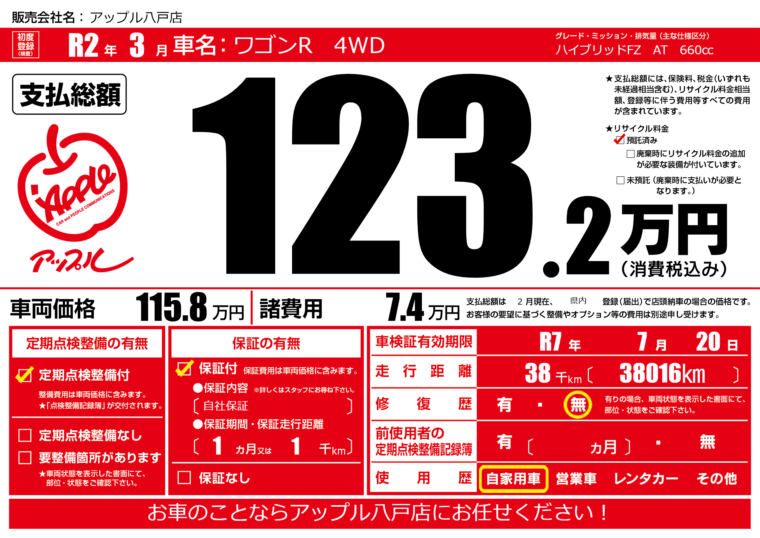 なし | 車検制限 | R7年7月20月 |