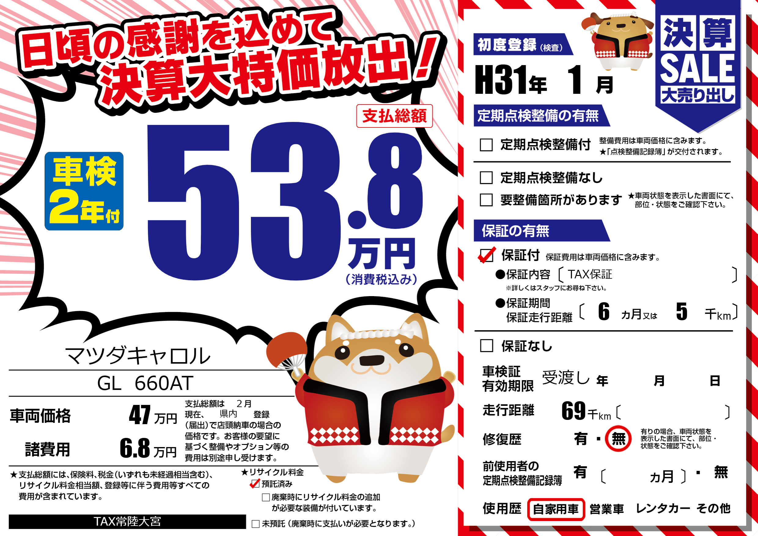 保証付き 保証内容(TAX保証) 6ヶ月または(5)千kmまで |