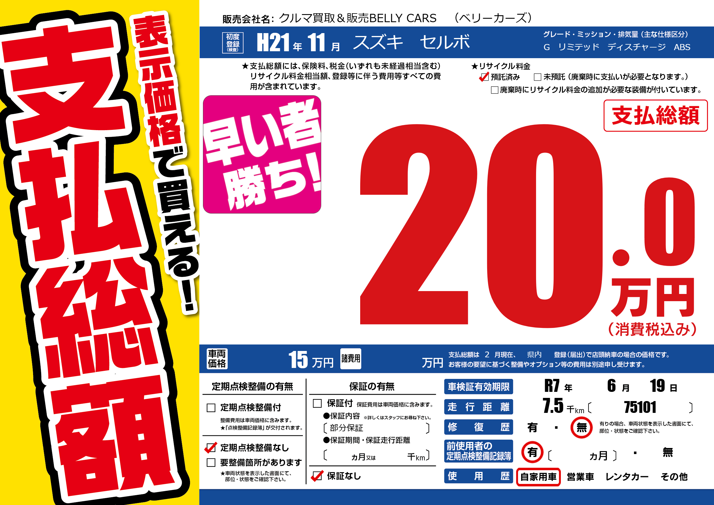 | 車名 | スズキ セルボ | グレード ミッション 排気量 |
