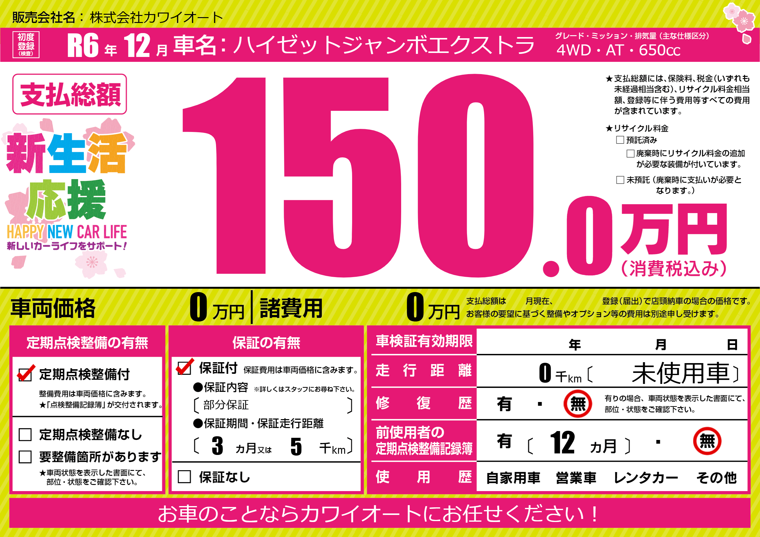 保証付き 保証内容(部分保証) 3ヶ月または(5)千kmまで |