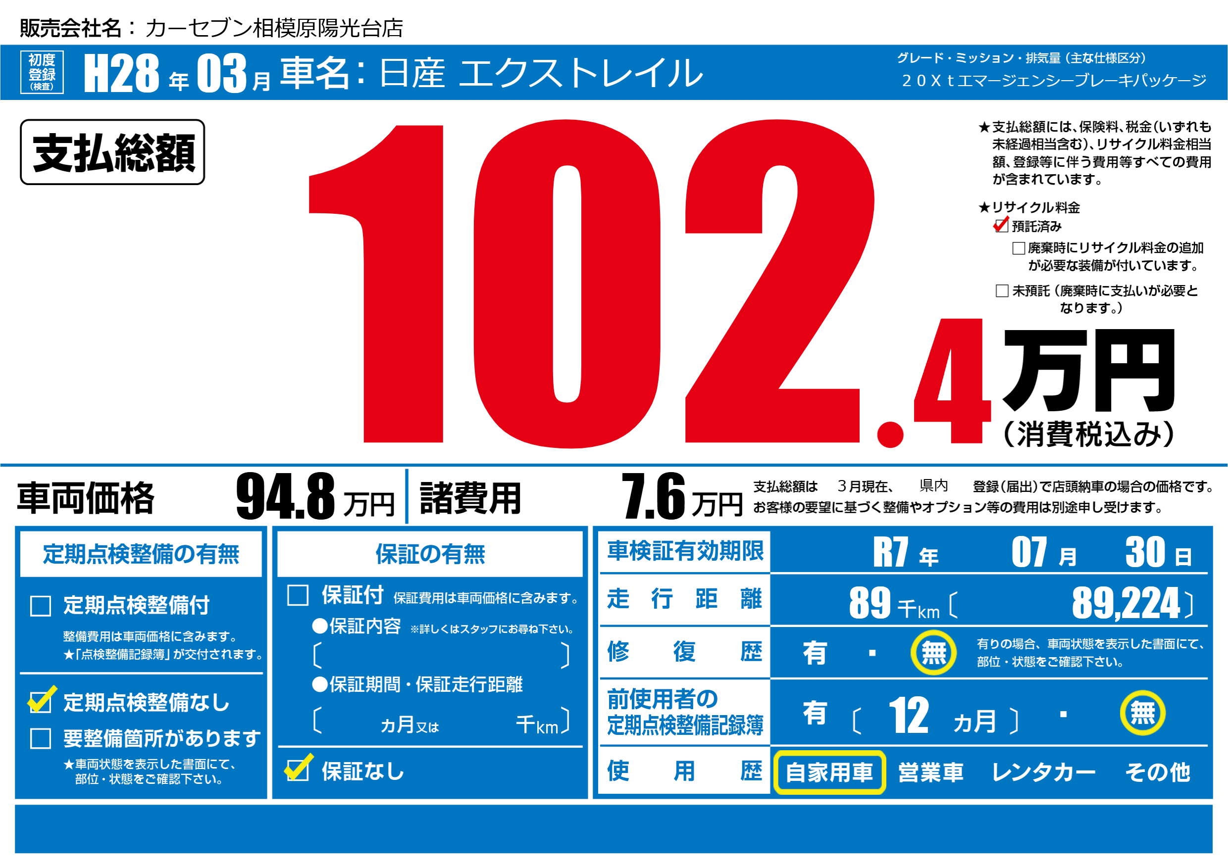なし | 車検制限 | R7年07月30月 |