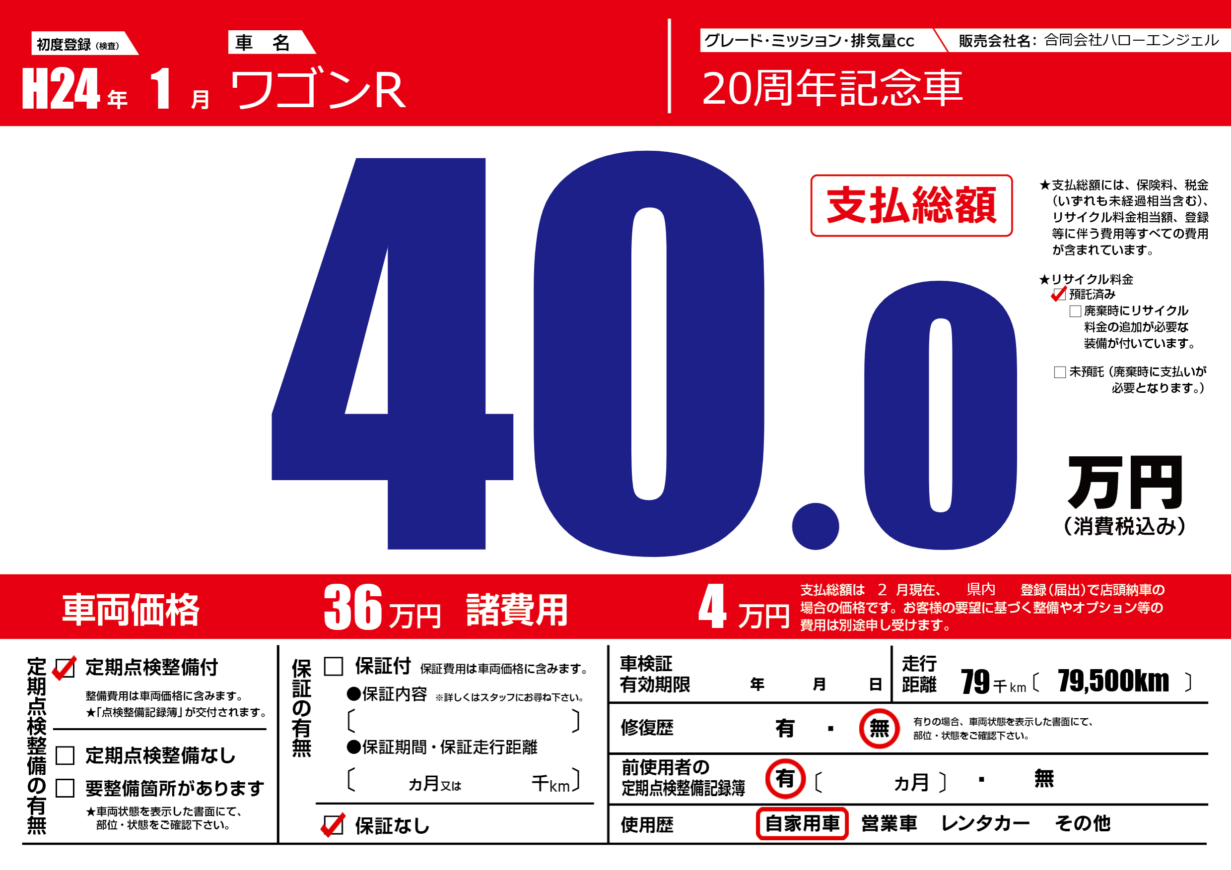 | 車検制限 | - 年 - 月 - 日 | ||