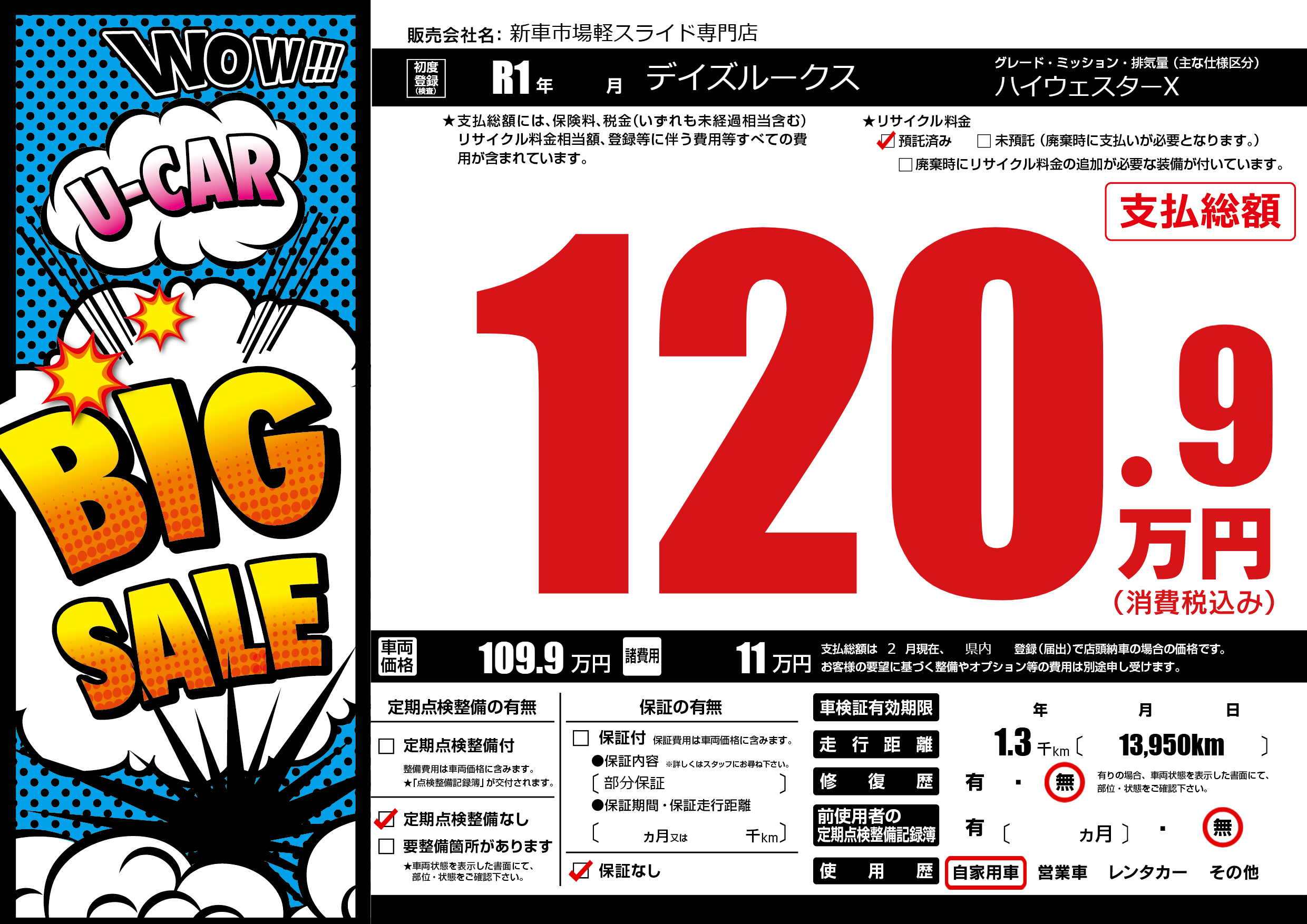 | 定期点検整備 | 定期点検整備なし | ||