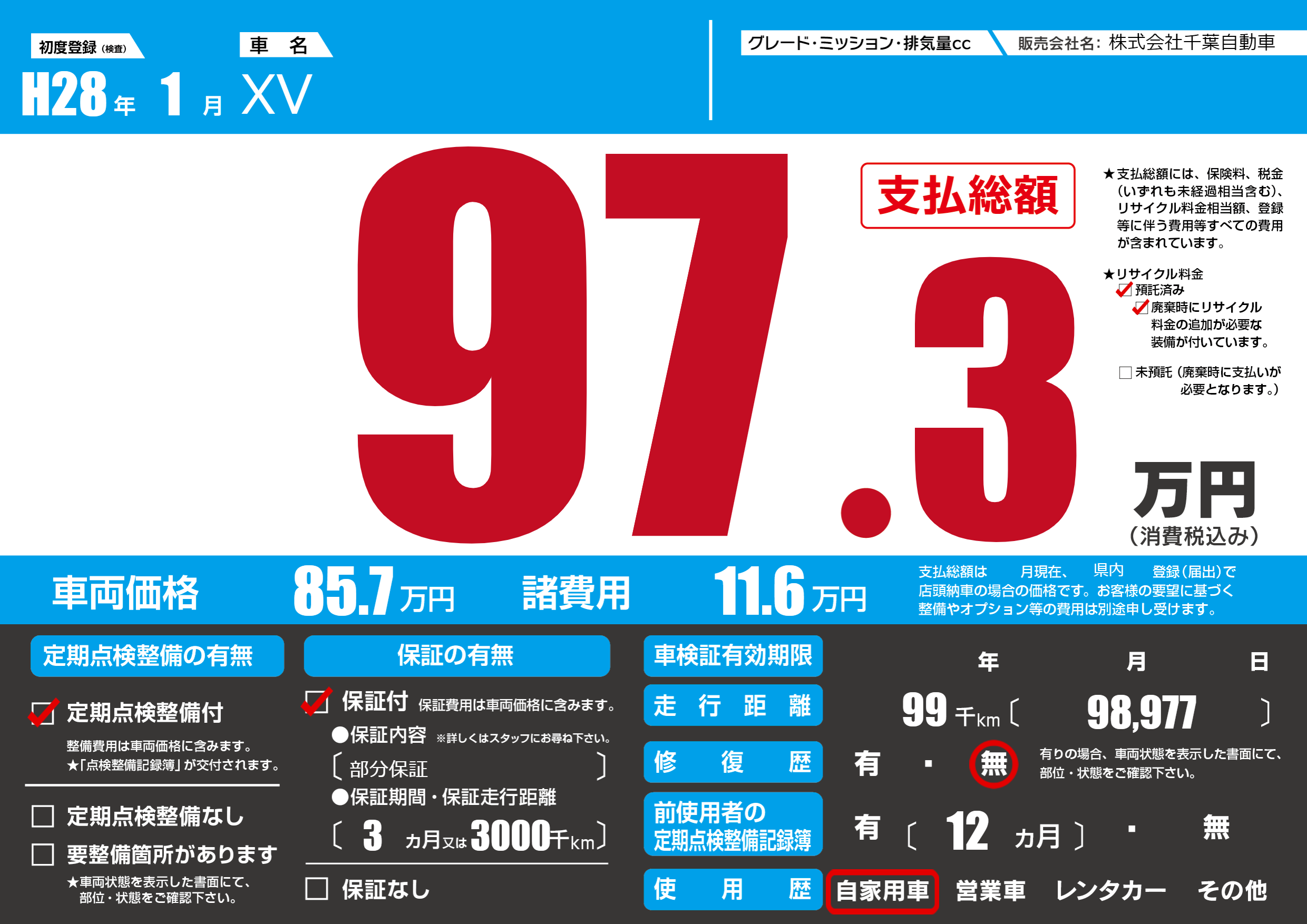保証付き 保証内容(部分保証) 3ヶ月または(3000)千kmまで |