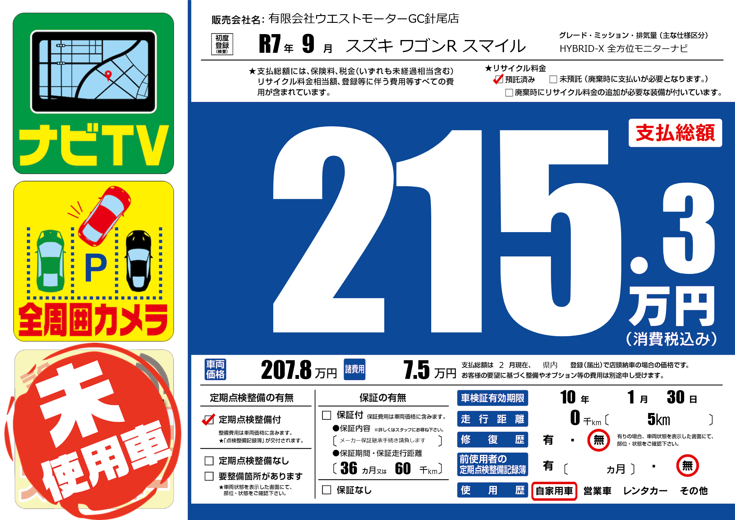 | 走行キロ | - | 初年度登録 | R7年9月 |