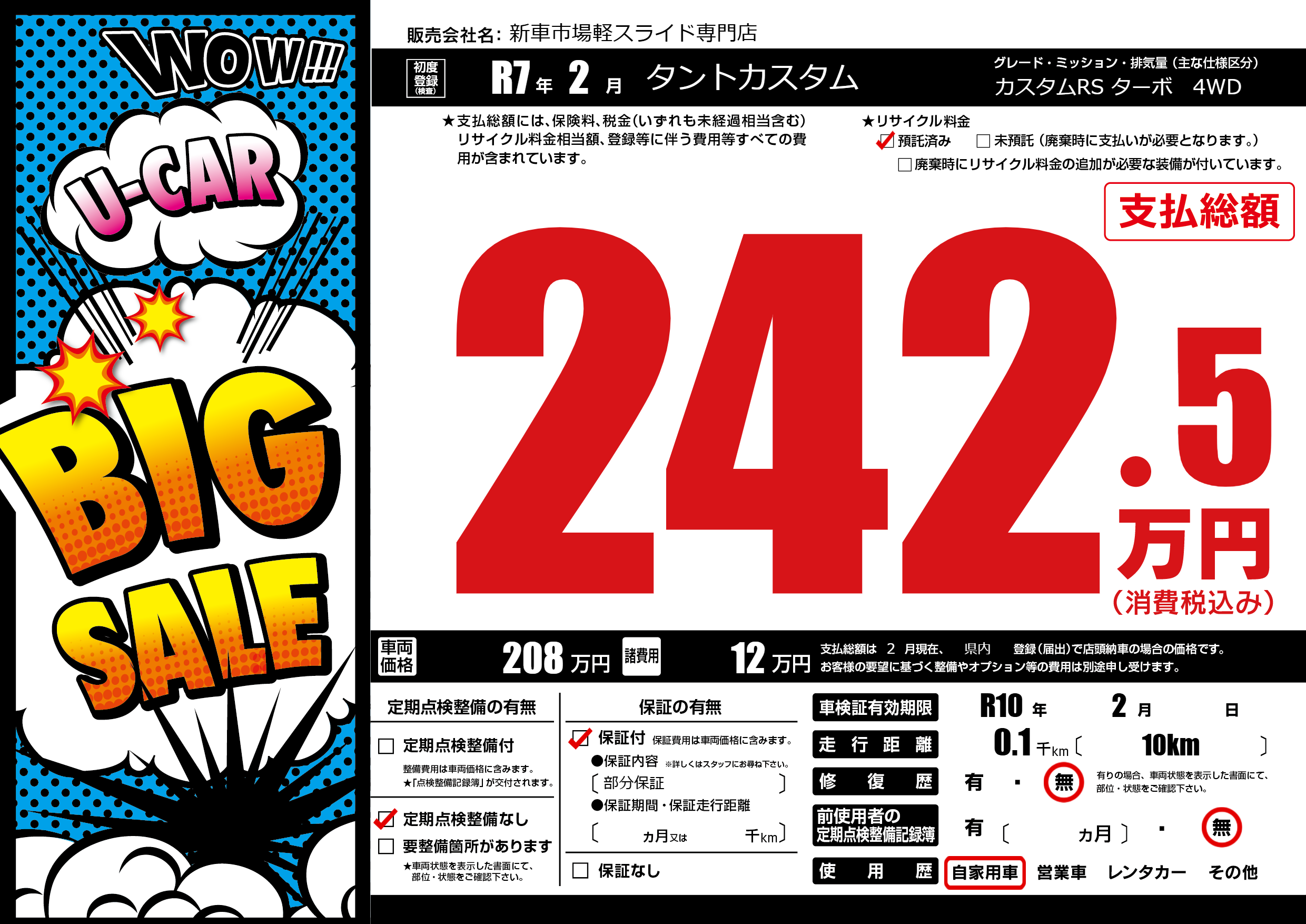 | 走行キロ | - | 初年度登録 | R7年2月 |