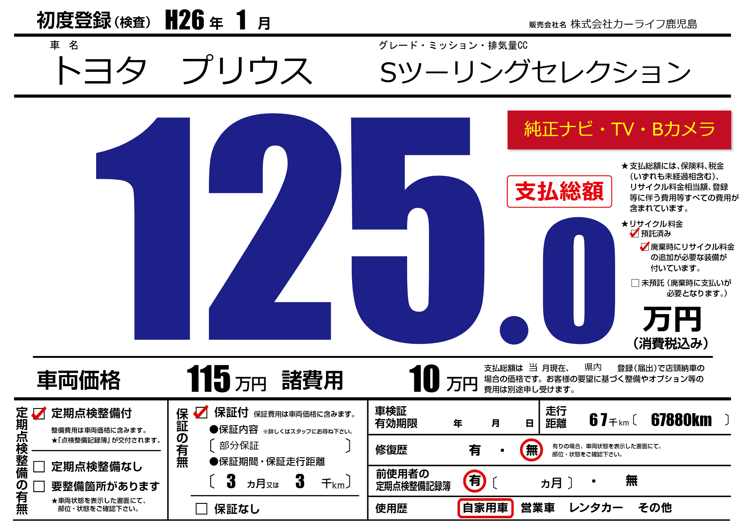 | 定期点検整備 | 定期点検整備あり | ||