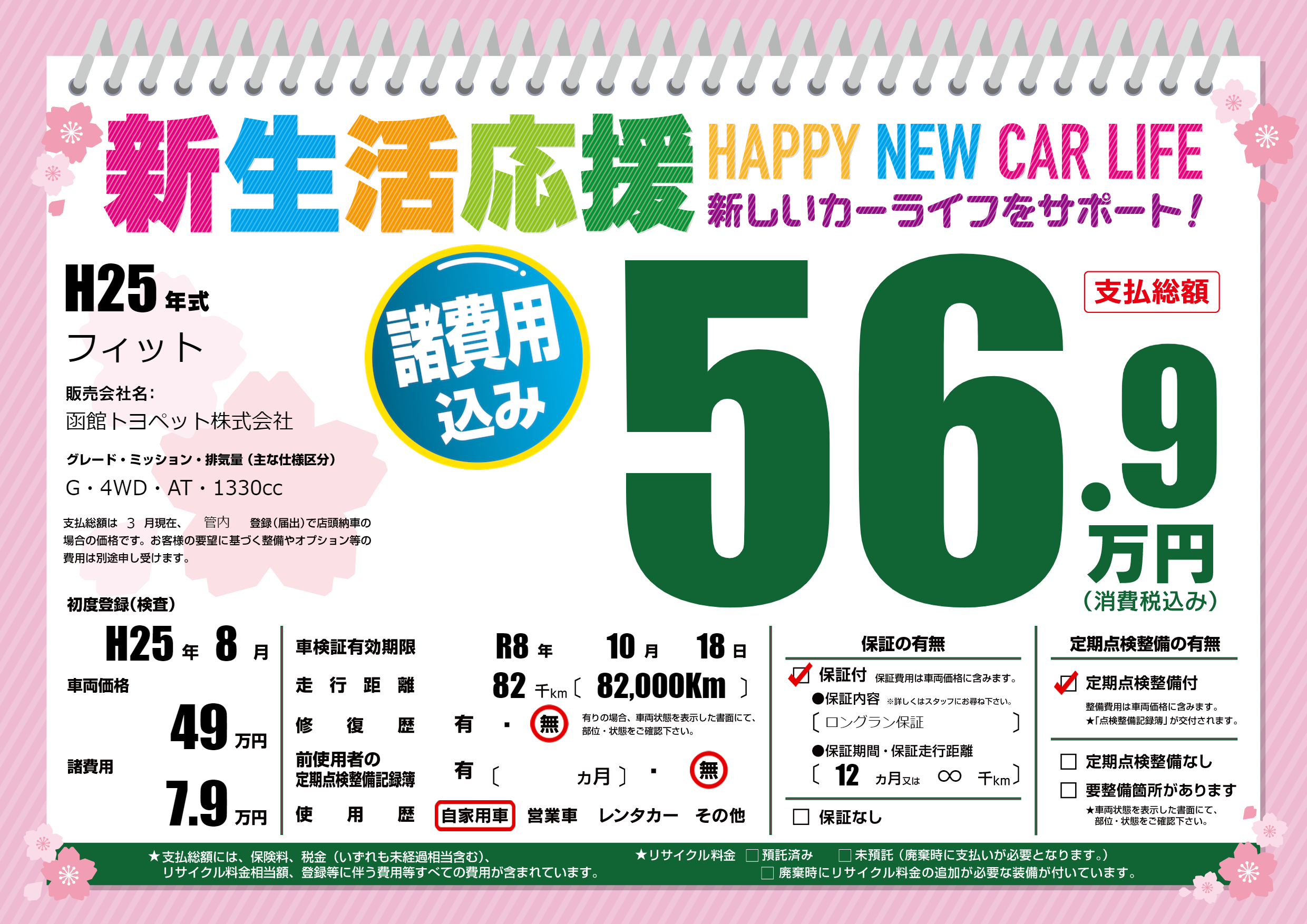 | 走行キロ | 8.2万km | 初年度登録 | H25年8月 |