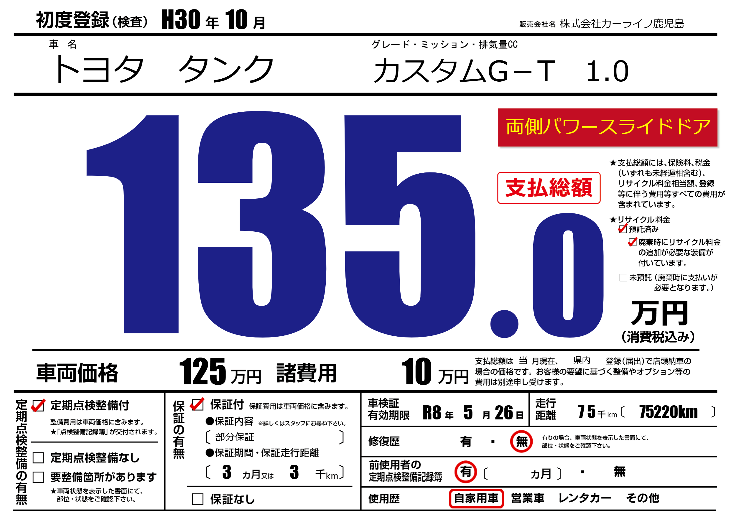| 初年度登録 | H30年10月 | ||