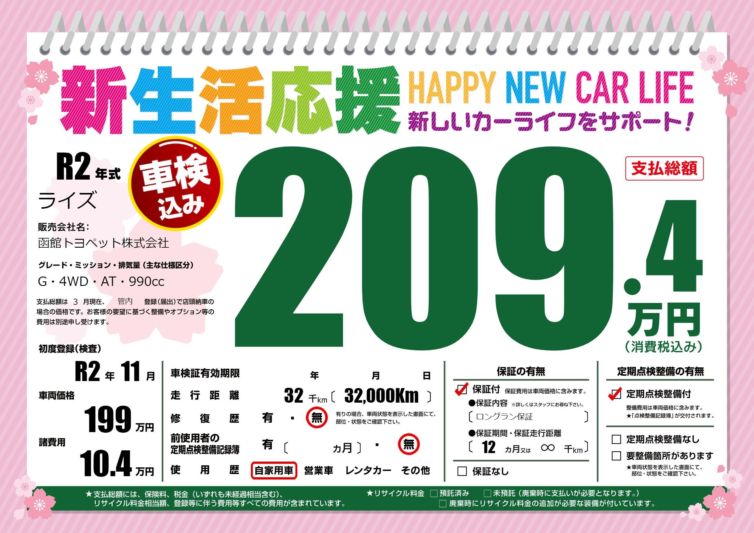 | 定期点検整備 | 定期点検整備あり | ||