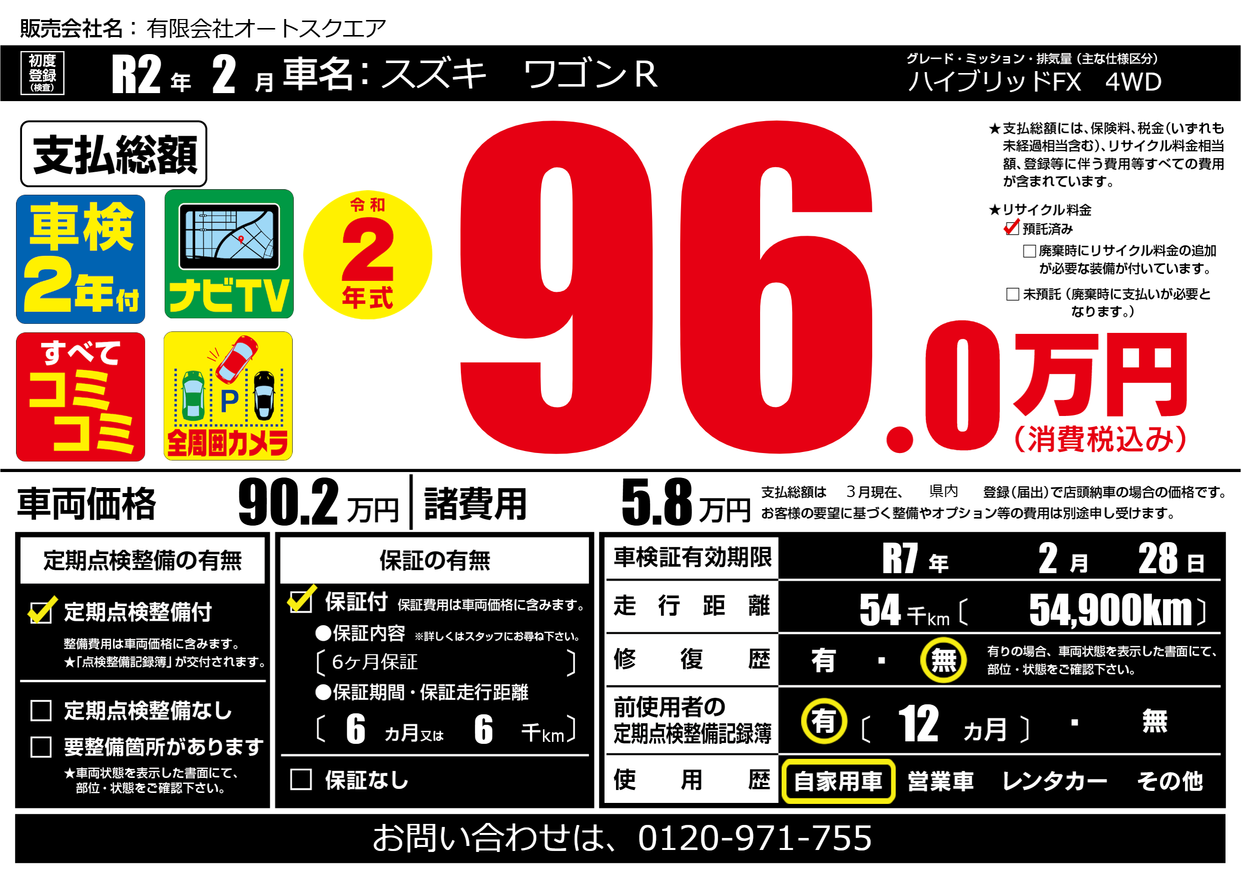 | 車検制限 | R7年 2月 28日 | ||