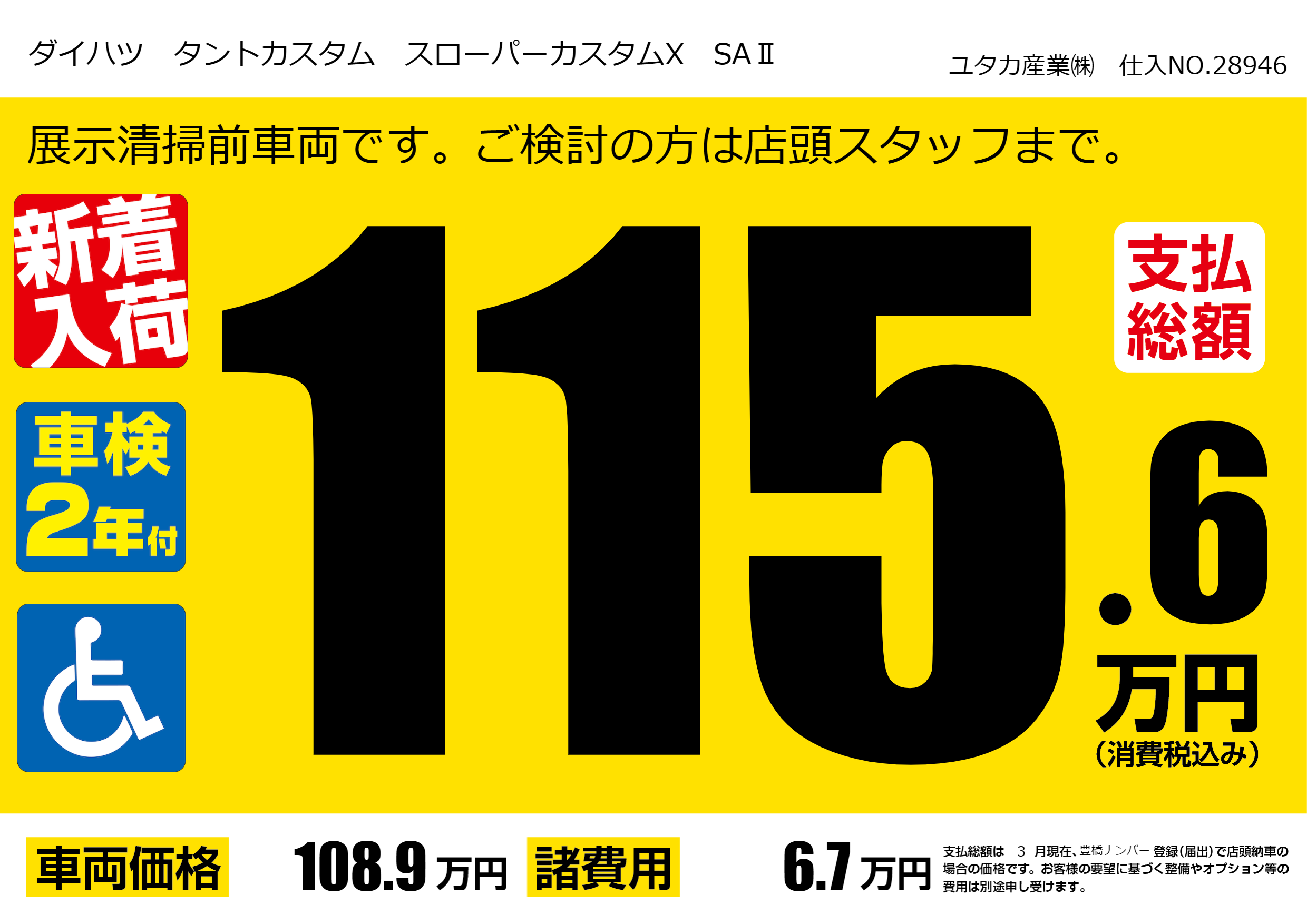 | 車名 | ダイハツ タントカスタム スローパーカスタムX SAⅡ | グレード ミッション 排気量 |