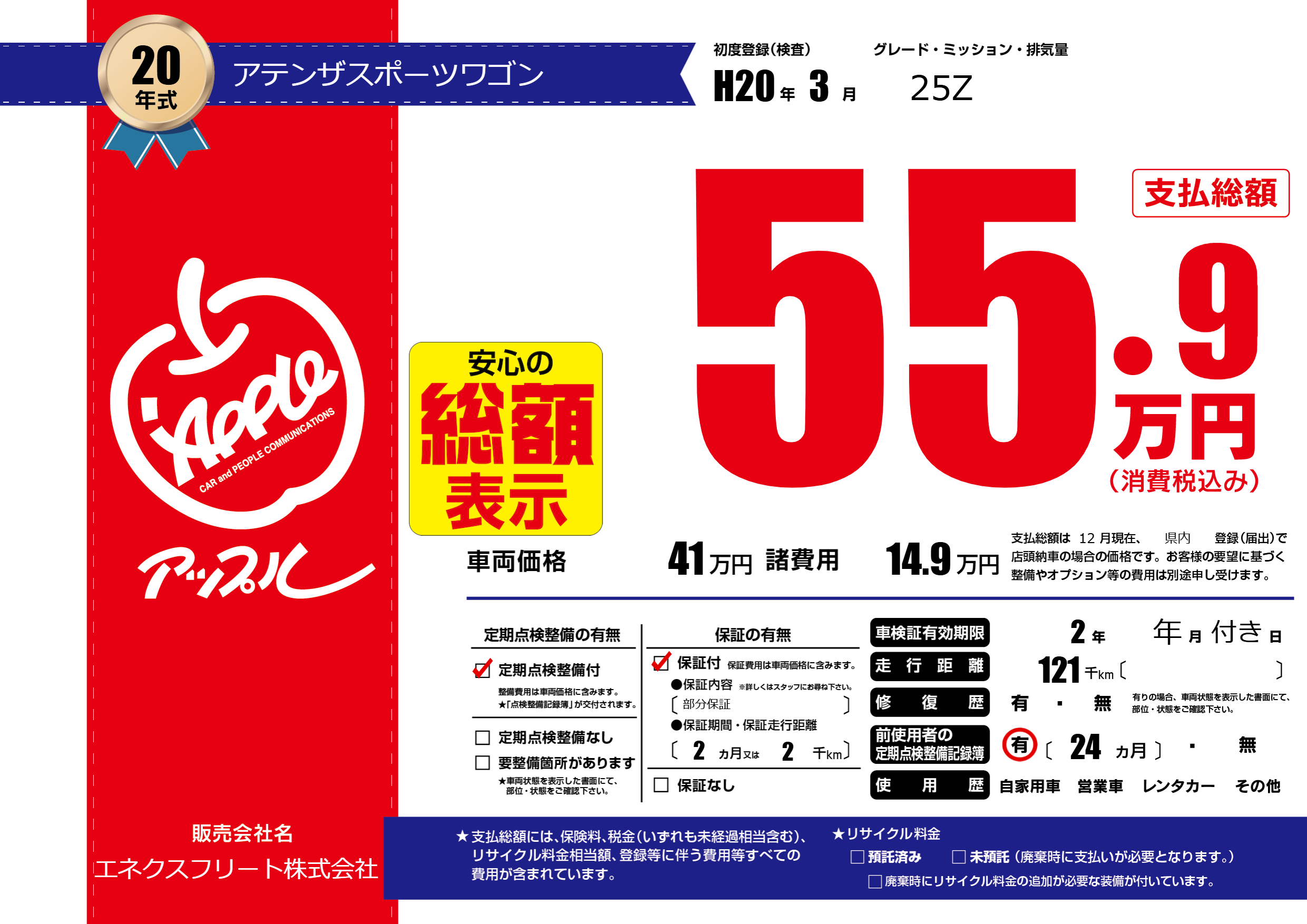 | 車名 | アテンザスポーツワゴン | グレード ミッション 排気量 |