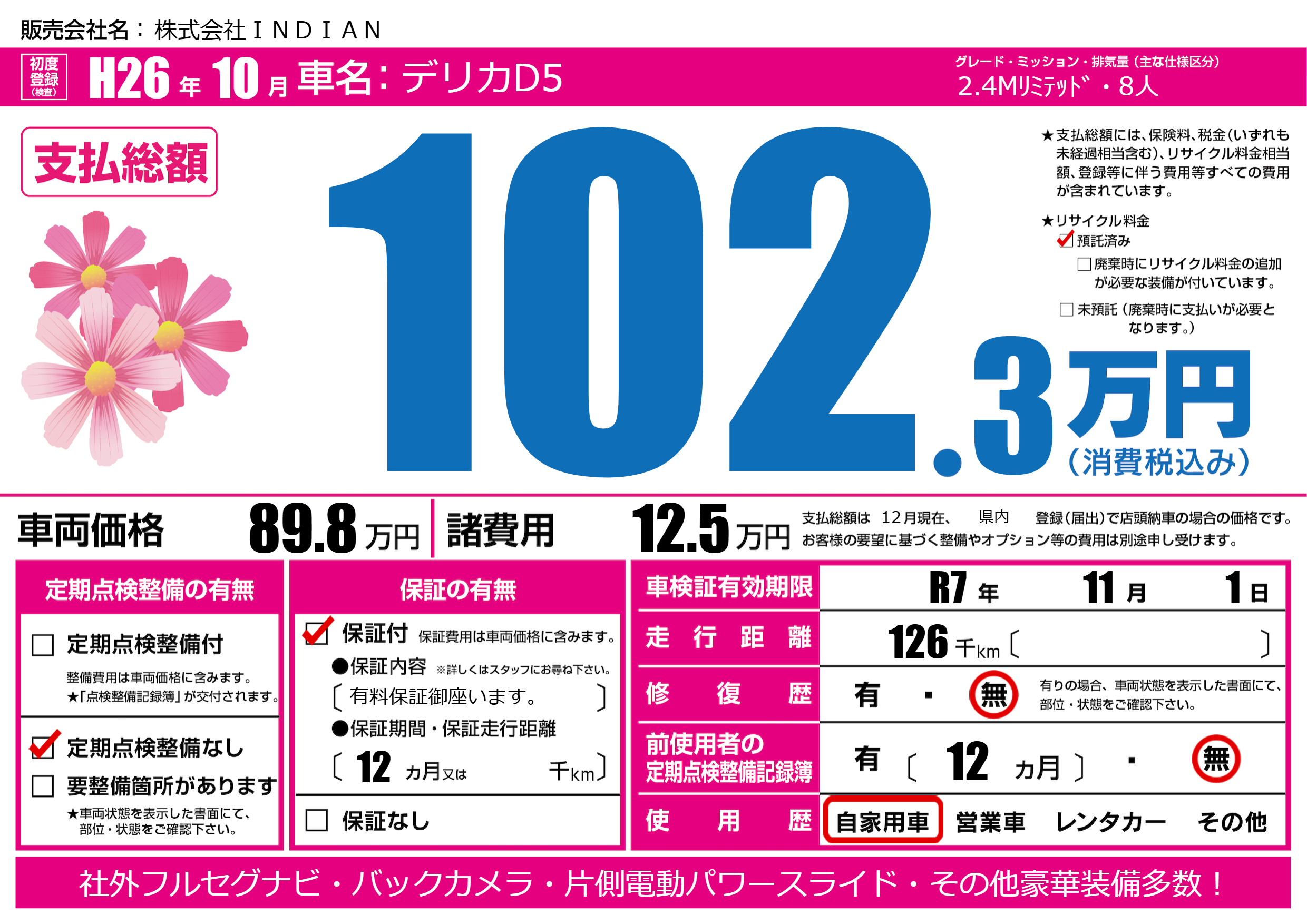 | 車検制限 | R7年 11月 1日 | ||