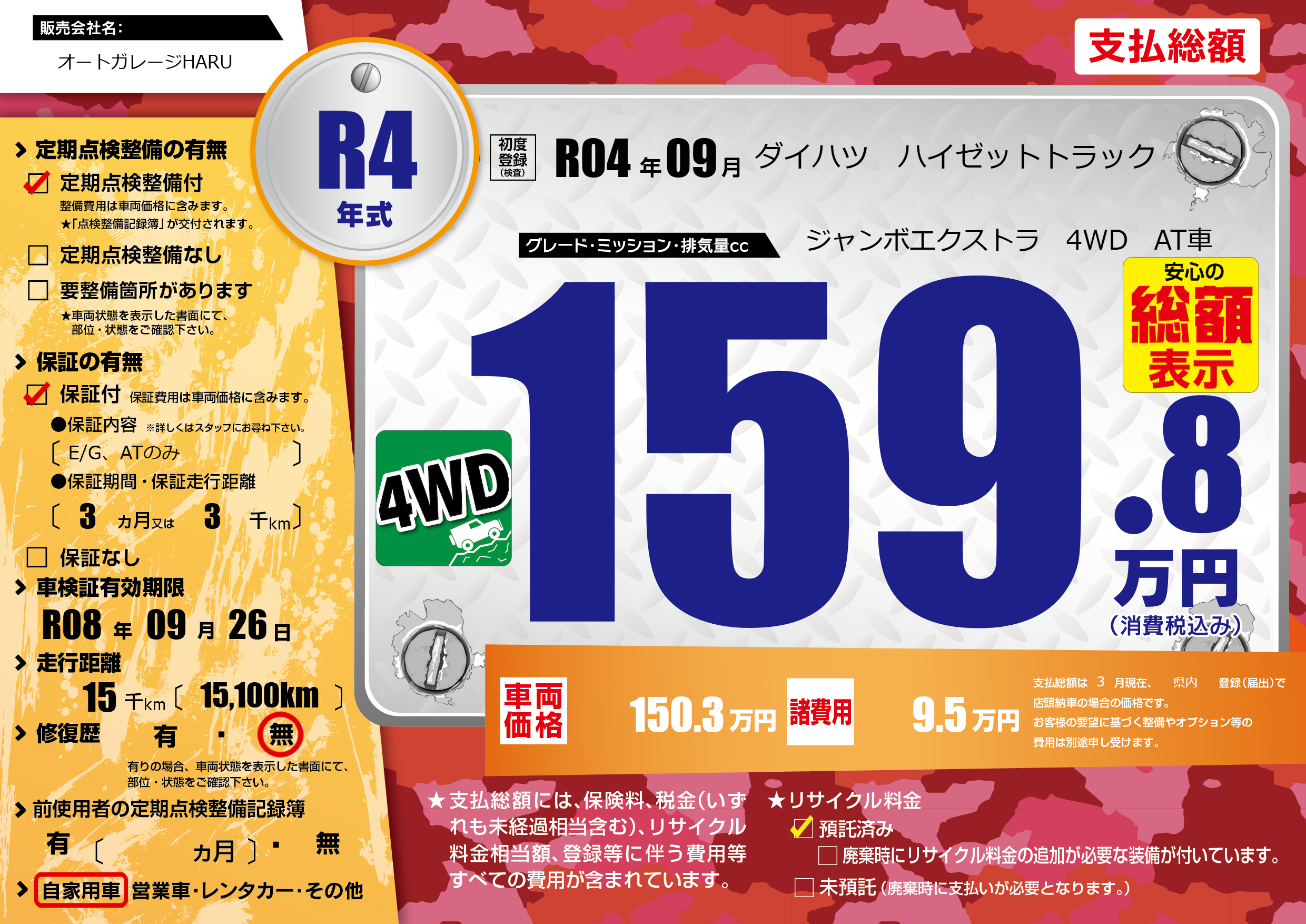 なし | 車検制限 | R08年09月26月 |