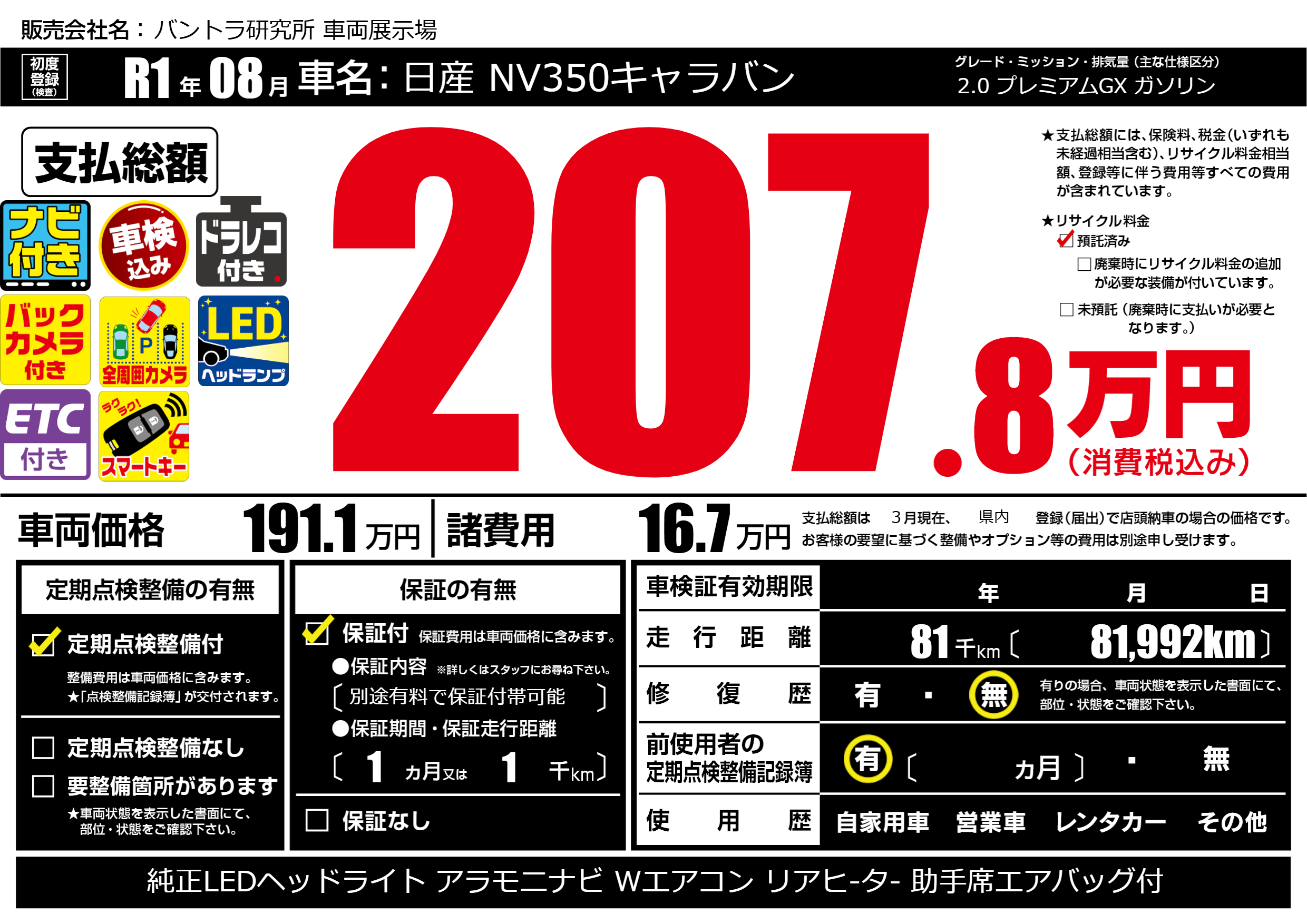 | 走行キロ | 8.1万km | ||
